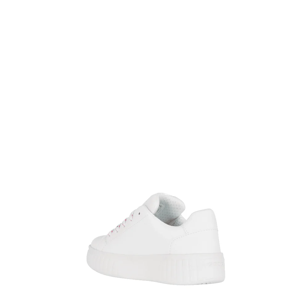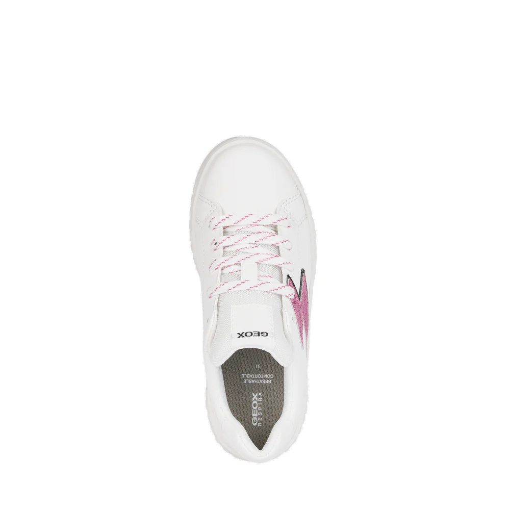Maak kennis met de Geox Mikiroshi J45DVA, de sneaker die stijl en comfort naadloos combineert voor de jonge modebewuste generatie. Deze witte veterschoenen met opvallende glanzende fuchsia-roze details zijn meer dan gewoon schoenen; ze zijn een fashion statement. Perfect voor elke dag, voegen ze een vleugje glamour toe aan alledaagse outfits. Ontworpen met het oog op comfort, bieden deze sneakers een mix van effen en metallic materialen met een leereffect, voor een flexibele, lichtgewicht en ademende ervaring die je voeten de hele dag verwent.