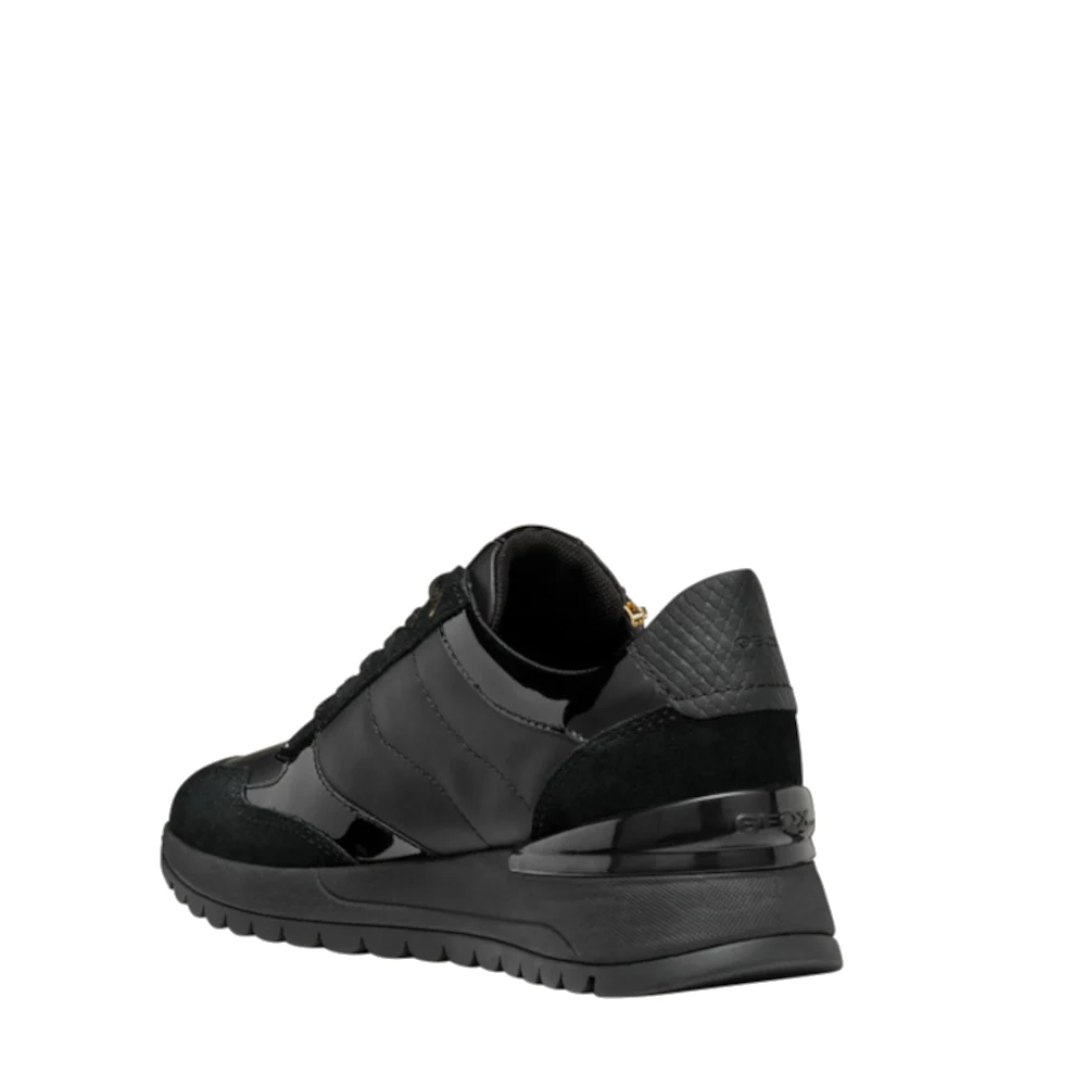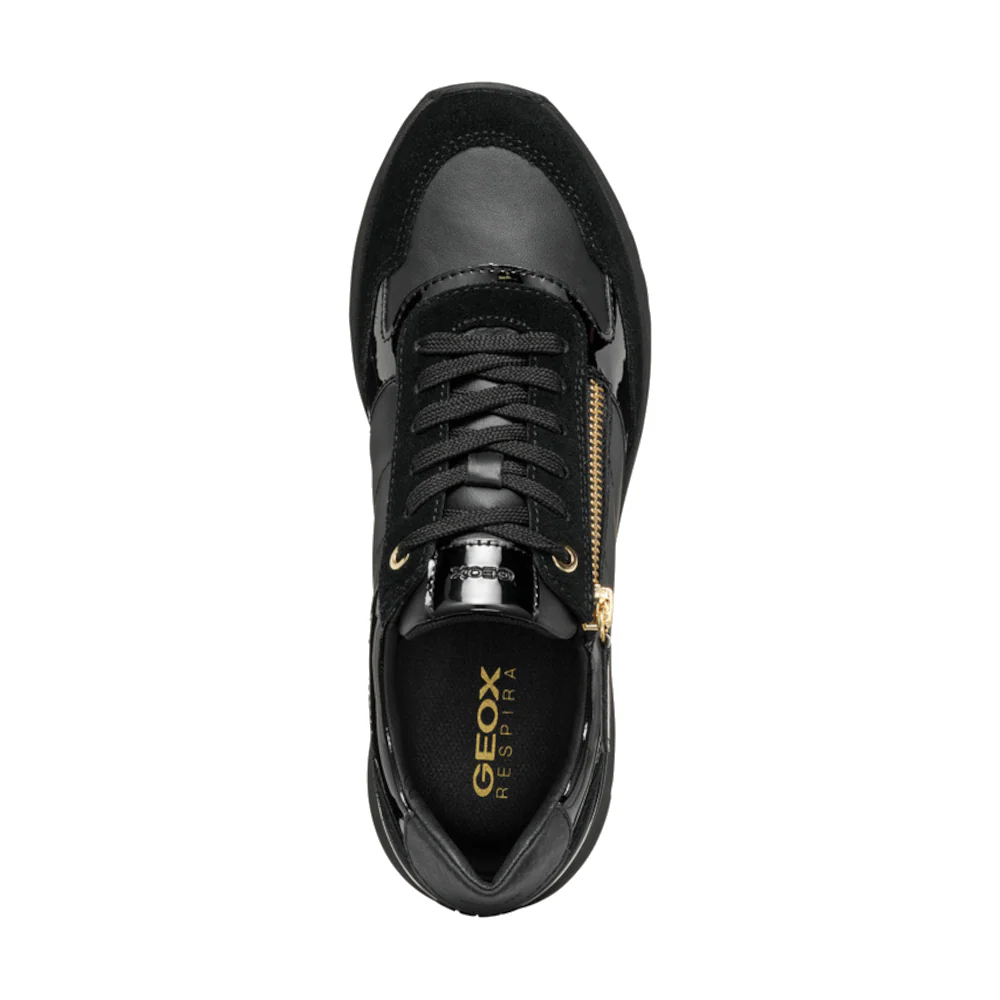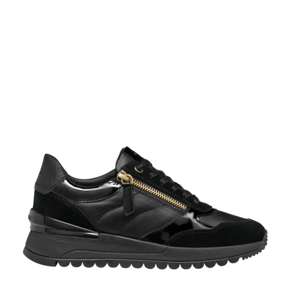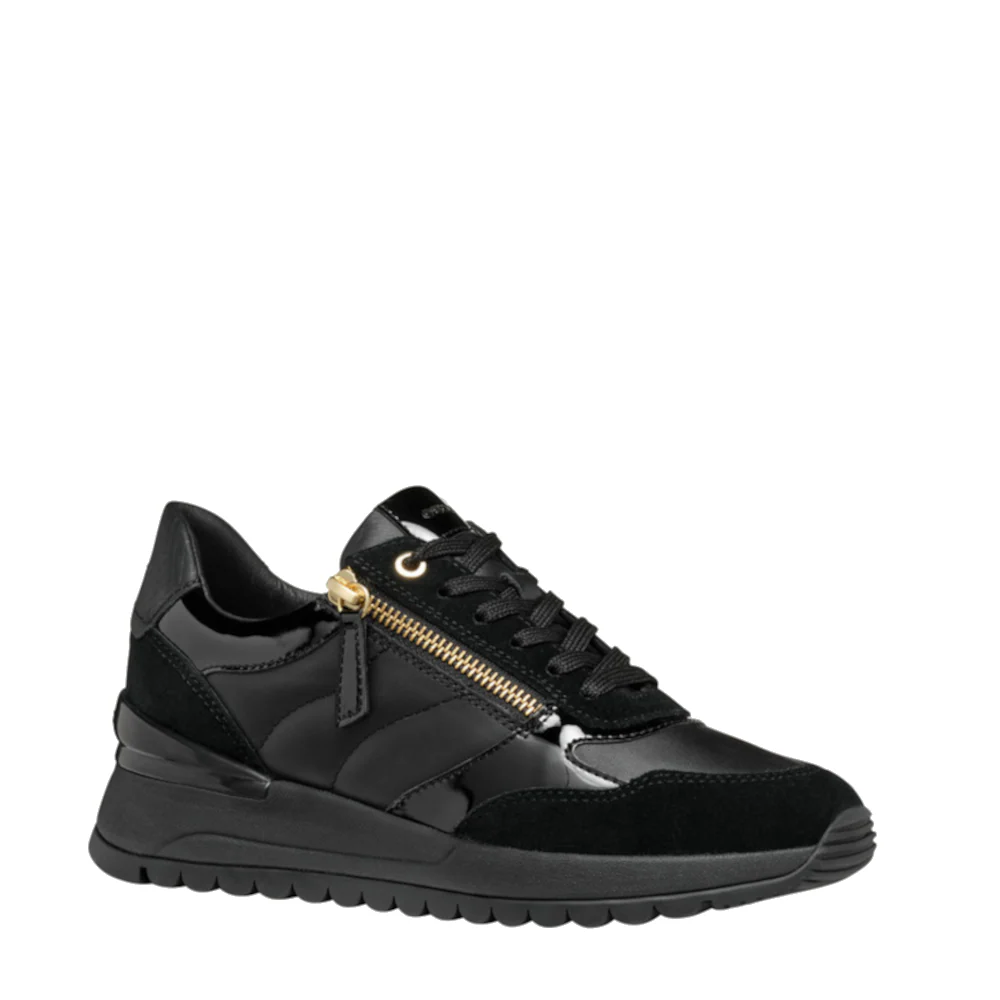 Dames, maak kennis met de Geox D4600A sneaker, een must-have voor wie op zoek is naar een mix van sportiviteit en elegantie. Deze zwarte schoenen, vervaardigd uit een luxueuze combinatie van nappa en suède, stralen kwaliteit en stijl uit. Dankzij de praktische ritssluiting aan de zijkant trek je deze sneakers gemakkelijk aan en uit. Het design, geïnspireerd op hardloopschoenen, maar met een chique twist, past perfect bij al je casual-chique outfits. Kortom, de ideale schoen voor elke gelegenheid.