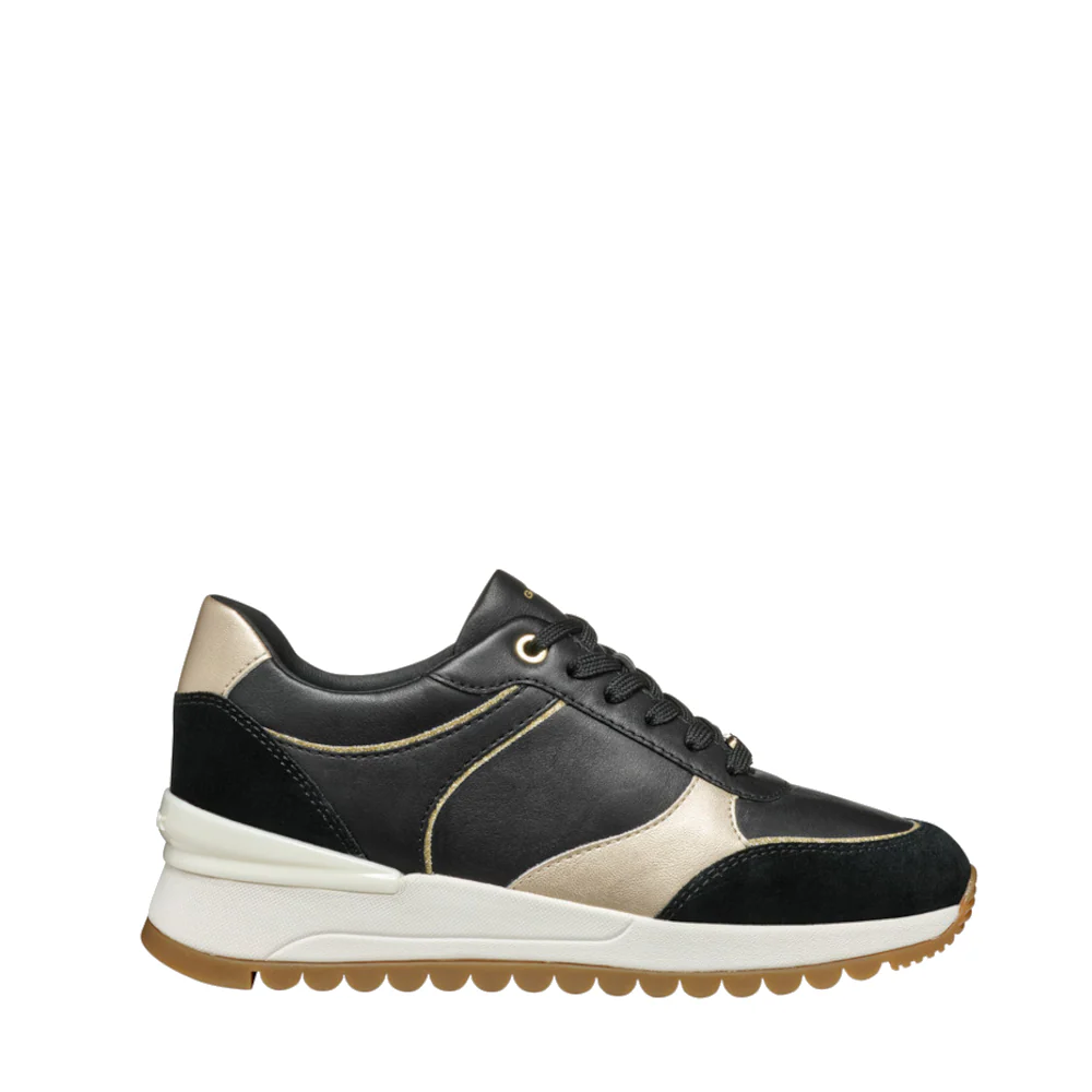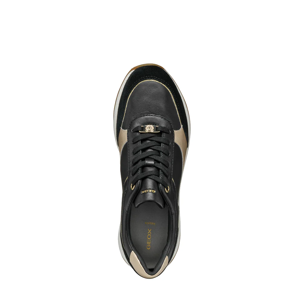 De Geox Veterschoenen D5500A Zwart zijn een must-have voor iedereen die zowel stijl als comfort belangrijk vindt. Deze sneakers hebben een praktische ritssluiting aan de zijkant, waardoor ze niet alleen trendy maar ook gemakkelijk aan en uit te trekken zijn. Gemaakt van een combinatie van soepel nappa en suède, in een chique zwarte en lichtgouden kleurstelling, tillen ze elke outfit naar een hoger niveau. De unieke ademende technologie van Geox zorgt bovendien voor droge en frisse voeten, de hele dag door.