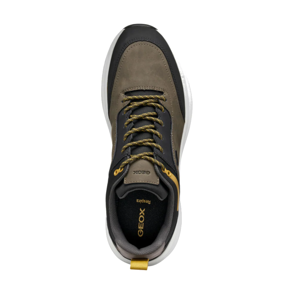 De Geox U56M2A veterschoenen zijn een moderne herensneaker die stijl en functionaliteit perfect balanceert. Met een ademend en volledig waterdicht ontwerp zorg je ervoor dat je voeten droog en comfortabel blijven, wat ze perfect maakt voor wisselvallig weer. Het bovenwerk is gemaakt van duurzaam nubuck-materiaal in een stoere legergroene en zwarte kleurstelling, afgewerkt met verfijnde details die een elegante touch toevoegen. De rubberen zool biedt uitstekende grip, zodat je zelfverzekerd over straat kunt lopen, of je nu door de stad slentert of een snelle wandeling maakt. Deze sneaker is ontworpen voor alledaags gebruik, met een focus op duurzaamheid en comfort, waardoor hij uitnodigt om onderdeel te worden van je dagelijkse outfit.