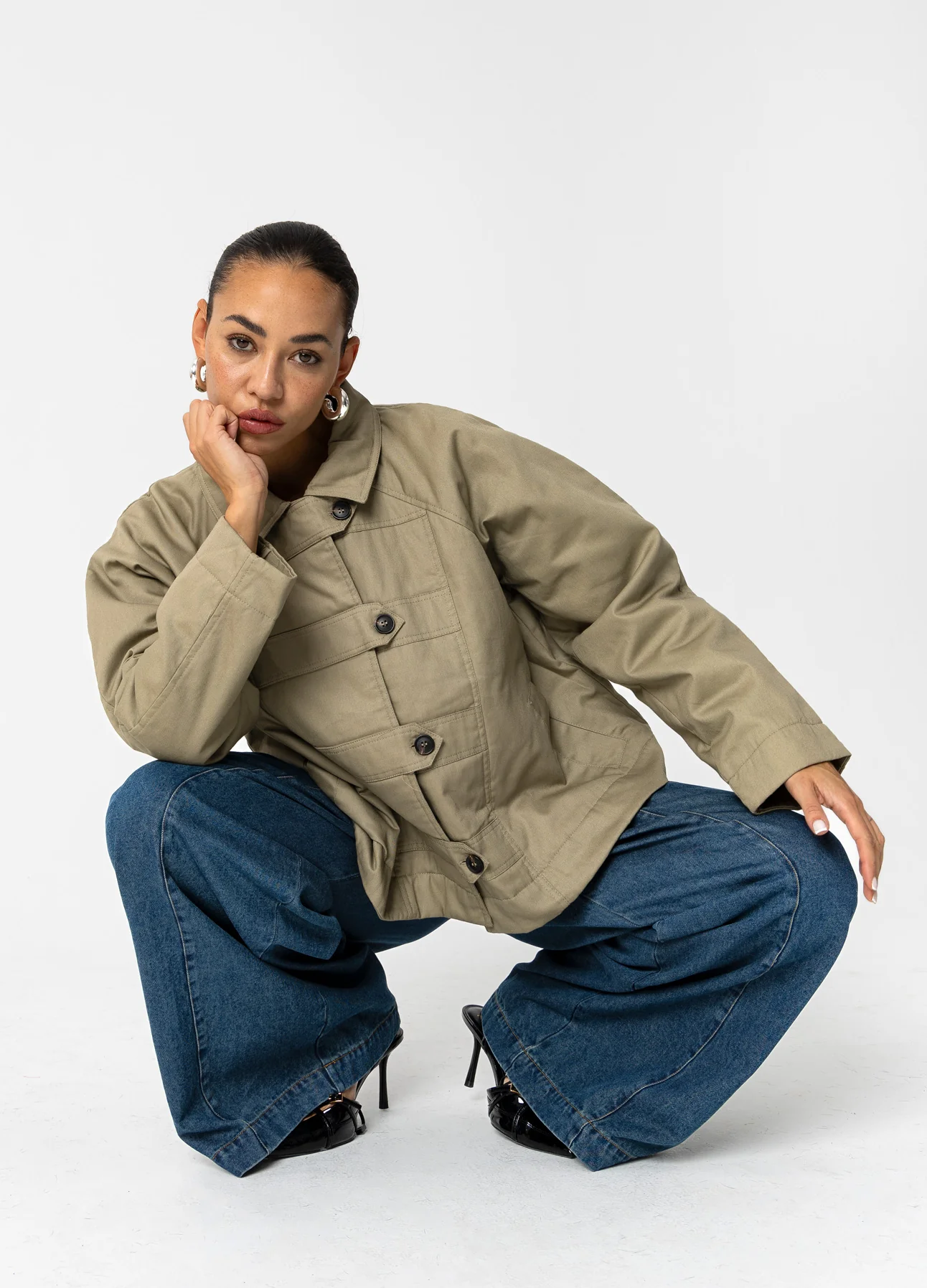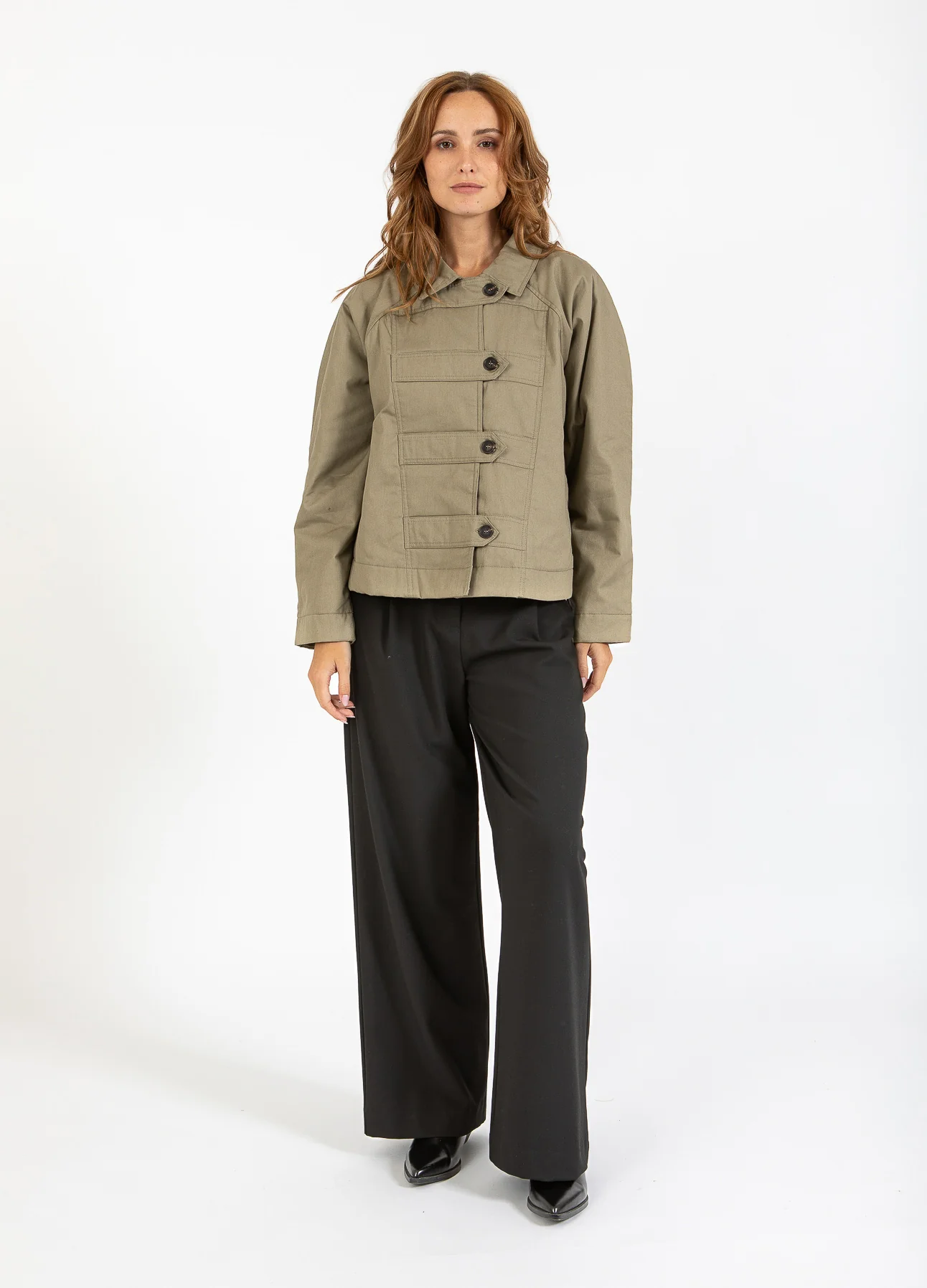 Het model is 173 cm lang en draagt maat S. Ze meet 84 cm rond de borst, 65 cm rond de taille en 96 cm rond de heupen.