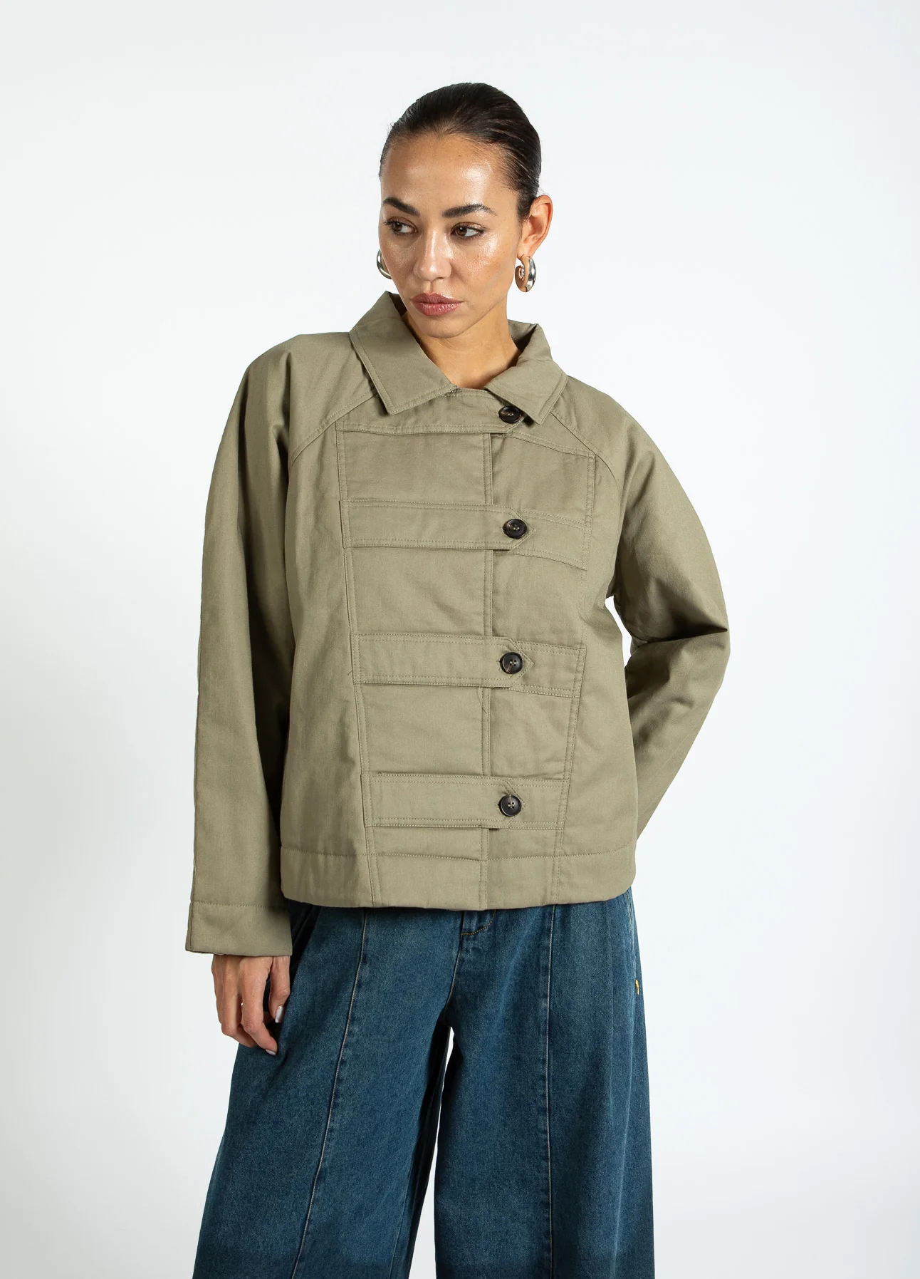Quality: Shell fabric: Cotton 100%. Lining: Cotton 35% polyester 65%. Padding: Polyester 100%