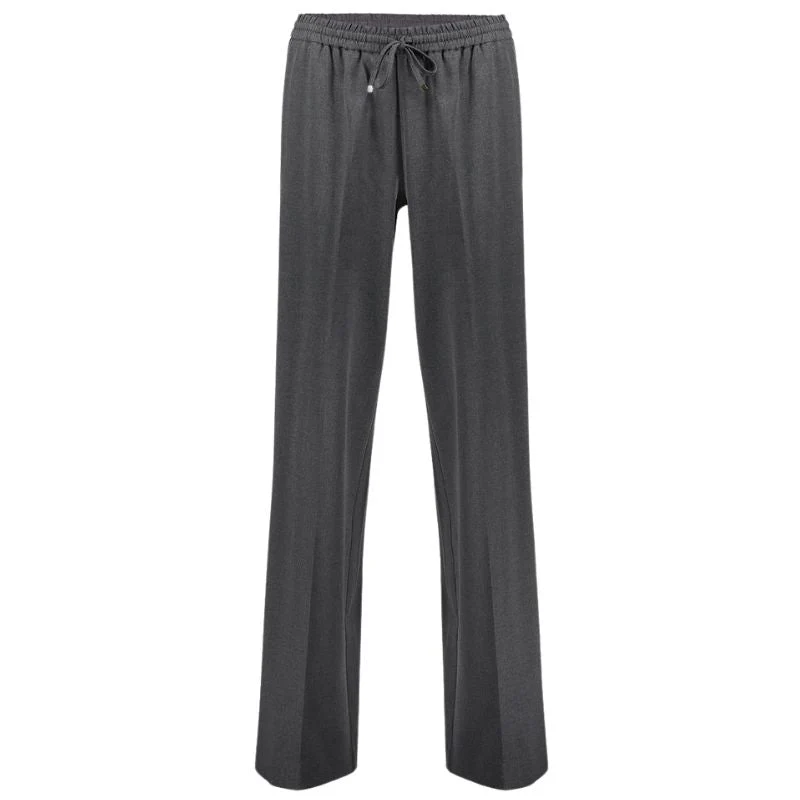 Grijze wide leg broek 51527 met koord van Geisha voor dames. Deze comfortabele broek combineert een moderne look met ultiem draagcomfort. Dankzij de high-rise taille met elastische band en aantrekkoord sluit de broek mooi aan, terwijl de soepele stof zorgt voor een elegante valling. De rechte, wijde pijpen geven het geheel een trendy en relaxte uitstraling.