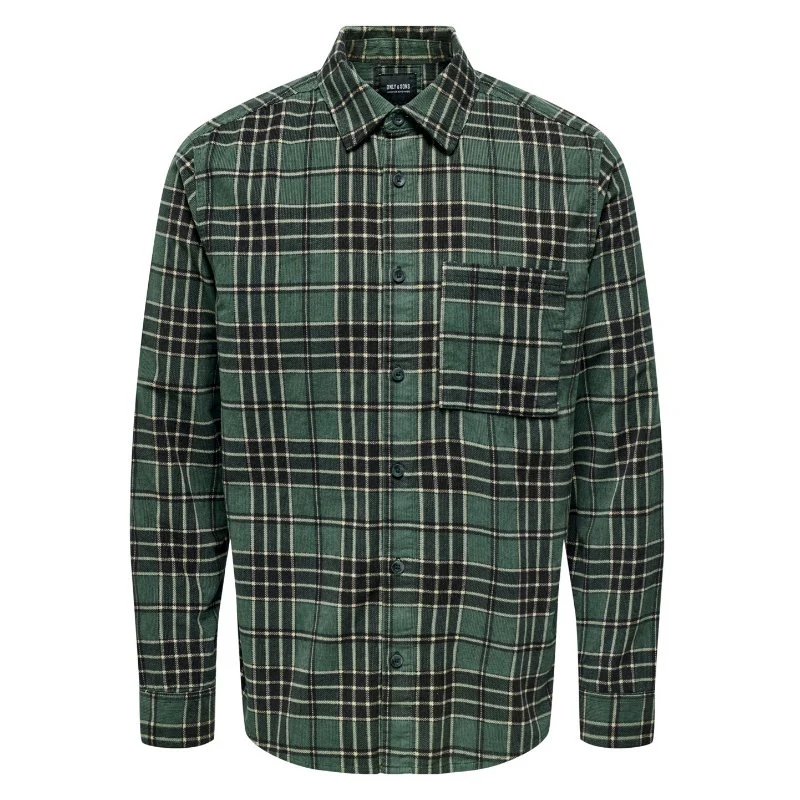 Groen geprint shirt Leo Check van ONLY & SONS voor heren. Dit shirt is voorzien van een ronde hals met een kraag, lange mouwen en knoopsluitingen. De voorzijde van het shirt heeft een borstzakje. Het shirt heeft een check print en is naast groen ook te verkrijgen in de kleur taupe.
