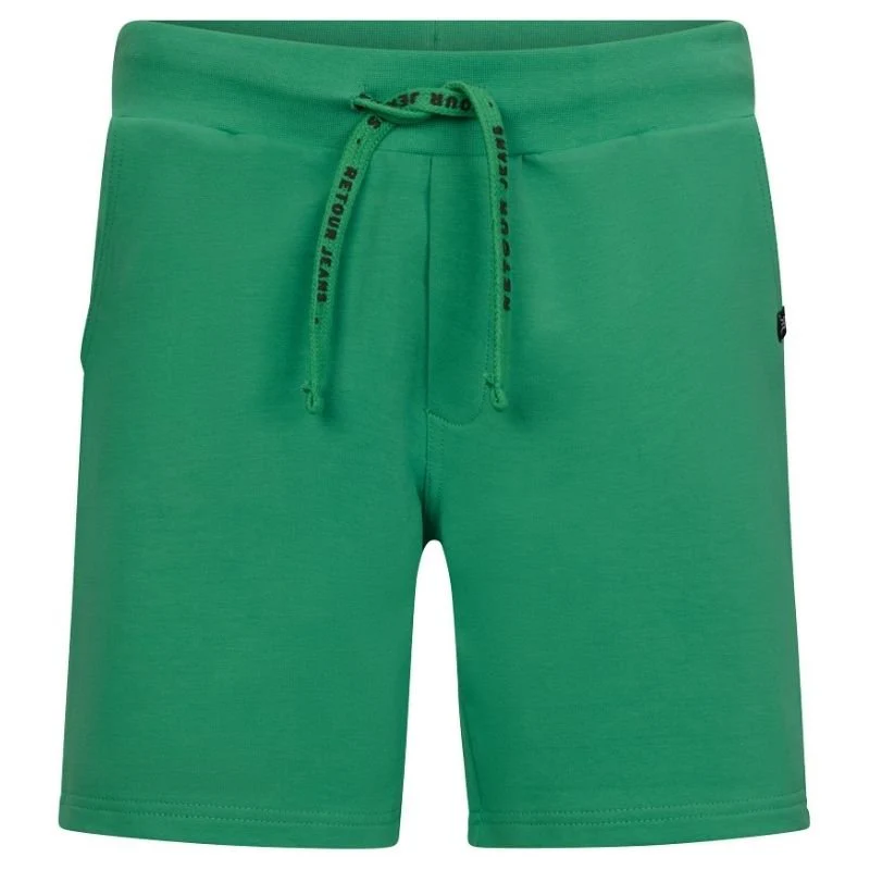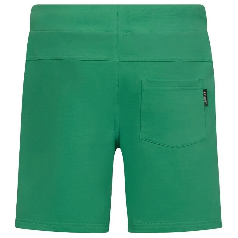 Groene short Maxim van Retour Jeans voor jongens. Deze comfortabele groene short is voorzien van een elastische tailleband met aansnoerkoord voor een perfecte pasvorm. Het biedt praktische zakken aan de zijkanten en is gemaakt van een zachte katoenmix. Verkrijgbaar in het groen en beige. Deze short is stijlvol en ideaal voor zowel sportieve activiteiten als een relaxte look.