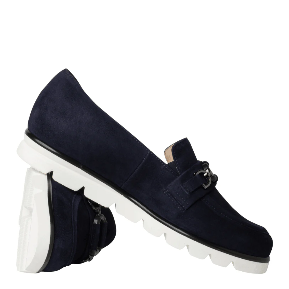 De Pisa pumps van Hassia zijn een echte klassieker die nooit uit de mode gaat. Ontworpen met de gemiddelde voetbreedte in gedachten, biedt dit model in breedte G een flatterende pasvorm voor velen. De elegante blauwe fluwelen geitenmateriaal wordt prachtig geaccentueerd met een fijn decoratief lint, terwijl de contrasterende zoolranden een harmonieus design vormen. Deze pumps bieden niet alleen een optimale pasvorm dankzij de onopvallende elastische inzetstukken, maar ook een uitzonderlijk draagcomfort. Dit maakt ze ideaal voor het combineren met diverse outfits; van smalle broeken tot sportieve looks en lichte zomerbreisels. De subtiele blikvanger is de lichte zool met het kenmerkende profiel, die niet alleen antislip is, maar ook stijlvol.