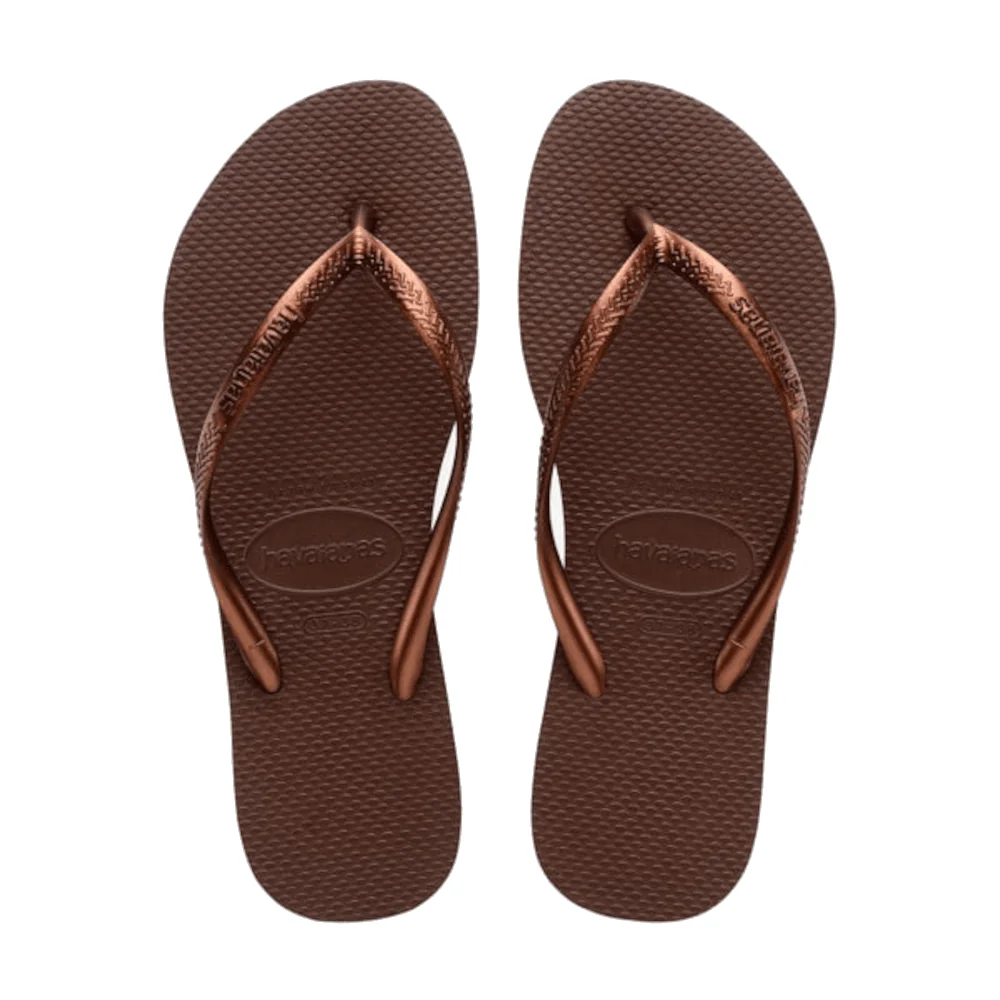 Geef je zomerse garderobe een upgrade met de Havaianas Slim Bruin flip flops. Dit paar is niet alleen een stijlvolle keuze maar biedt ook ongeëvenaard comfort voor je voeten.