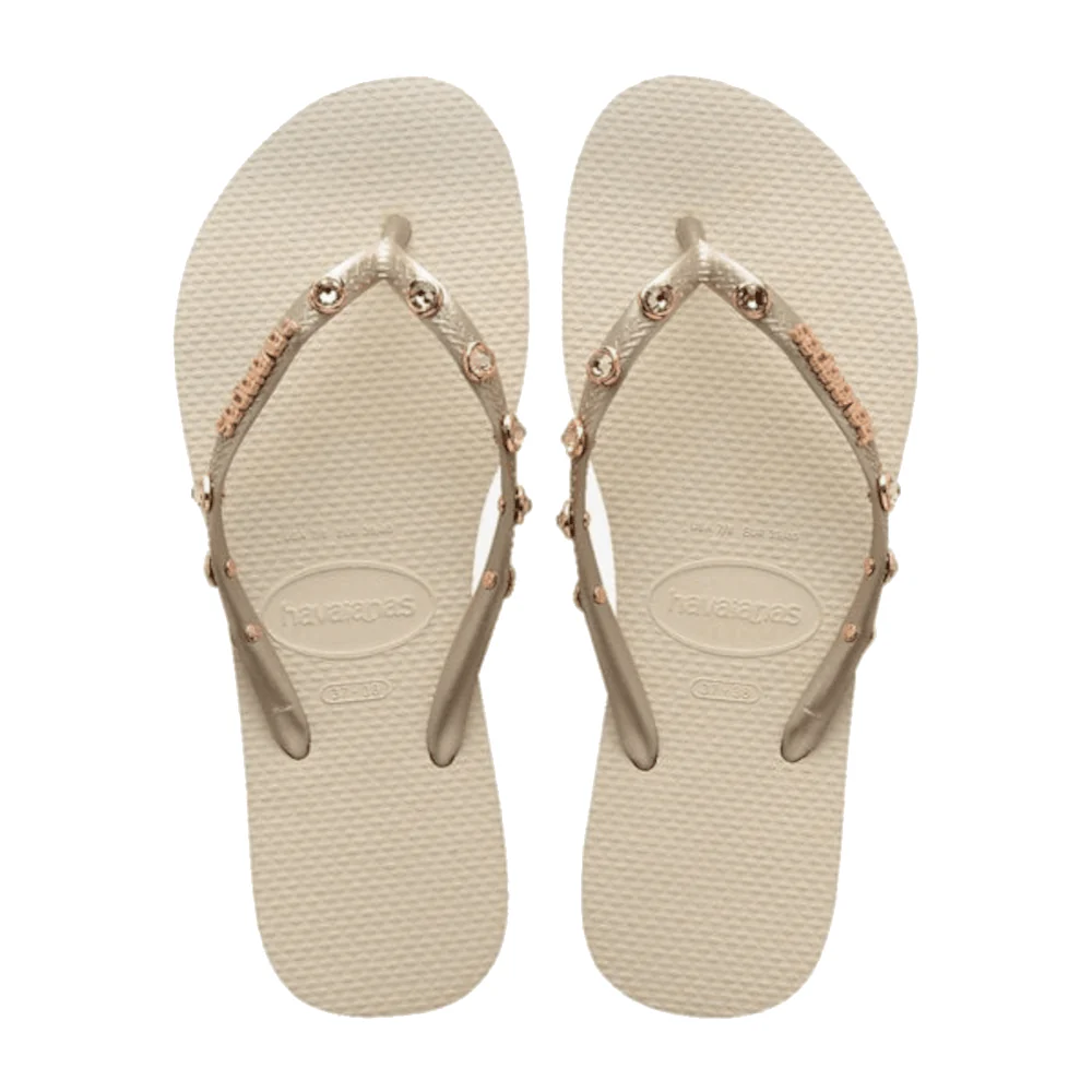 Zet een stap in de richting van moeiteloze elegantie en comfort met de Havaianas Slim Luxury Beige slippers.