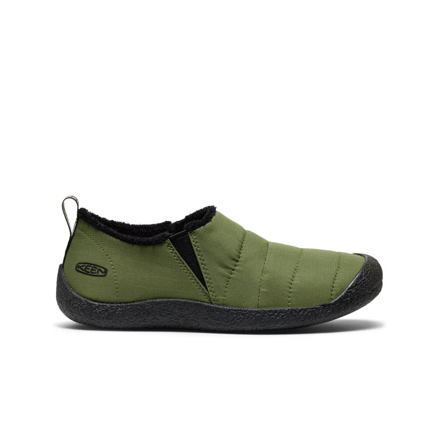 Onder KEEN fans is de Howser een favoriet als makkelijke instapper voor op de camping, om de hond mee uit te laten, de boodschappen te doen en al die andere activiteiten waarbij gebruiksgemak en comfort voorop staan. Dat is niet voor niks, want de Howser biedt het genoeglijke comfort van een huisslof. Niet zo gek dus dat de instapper ook populair is als pantoffel. Wie ze eenmaal heeft wordt vanzelf fan. Dat het ook nog een duurzame keuze is, is meteen mooi meegenomen. De upper van gewatteerd nylon is gemaakt van gerecyclede PET-flessen en voorzien van een heerlijk warme en zachte fleece voering. Een uitneembaar foam-voetbed past zich aan naar je voet, terwijl het elke stap dempt. De rubberen loopzool is flexibel en garandeert goede grip op vele ondergronden, buiten en binnen.