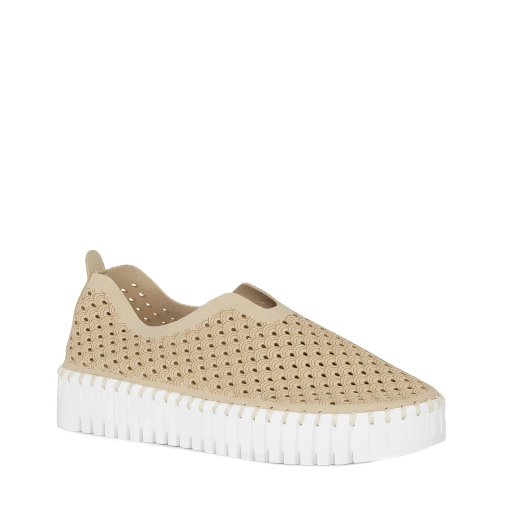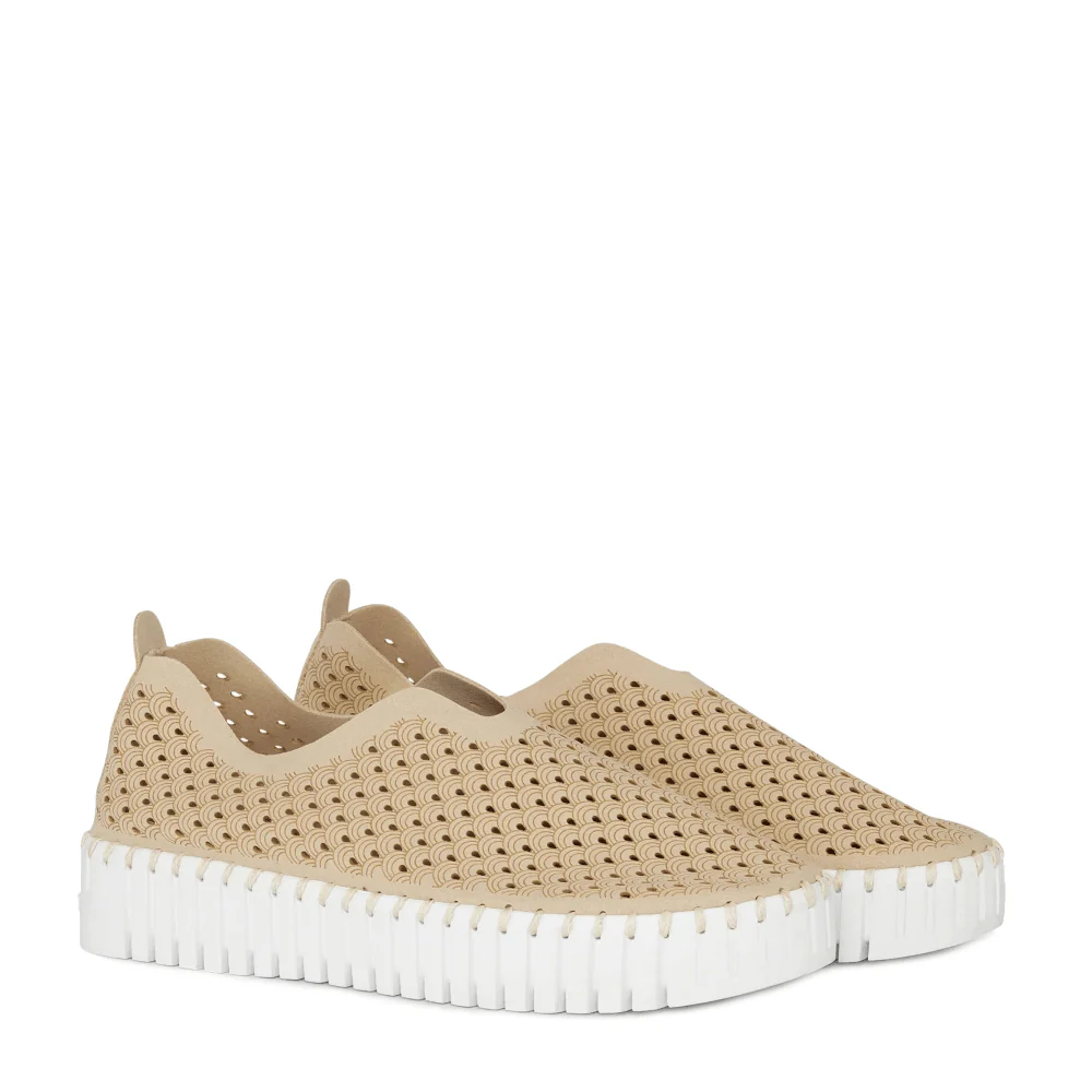 • Gerecycled microvezel bovenkant met een trendy lasergesneden patroon voegt een unieke touch toe.