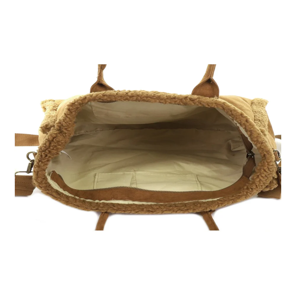 - Stijlvol design: Met zijn trendy teddy randjes en stijlvolle camel kleur is deze tas een echte eyecatcher.