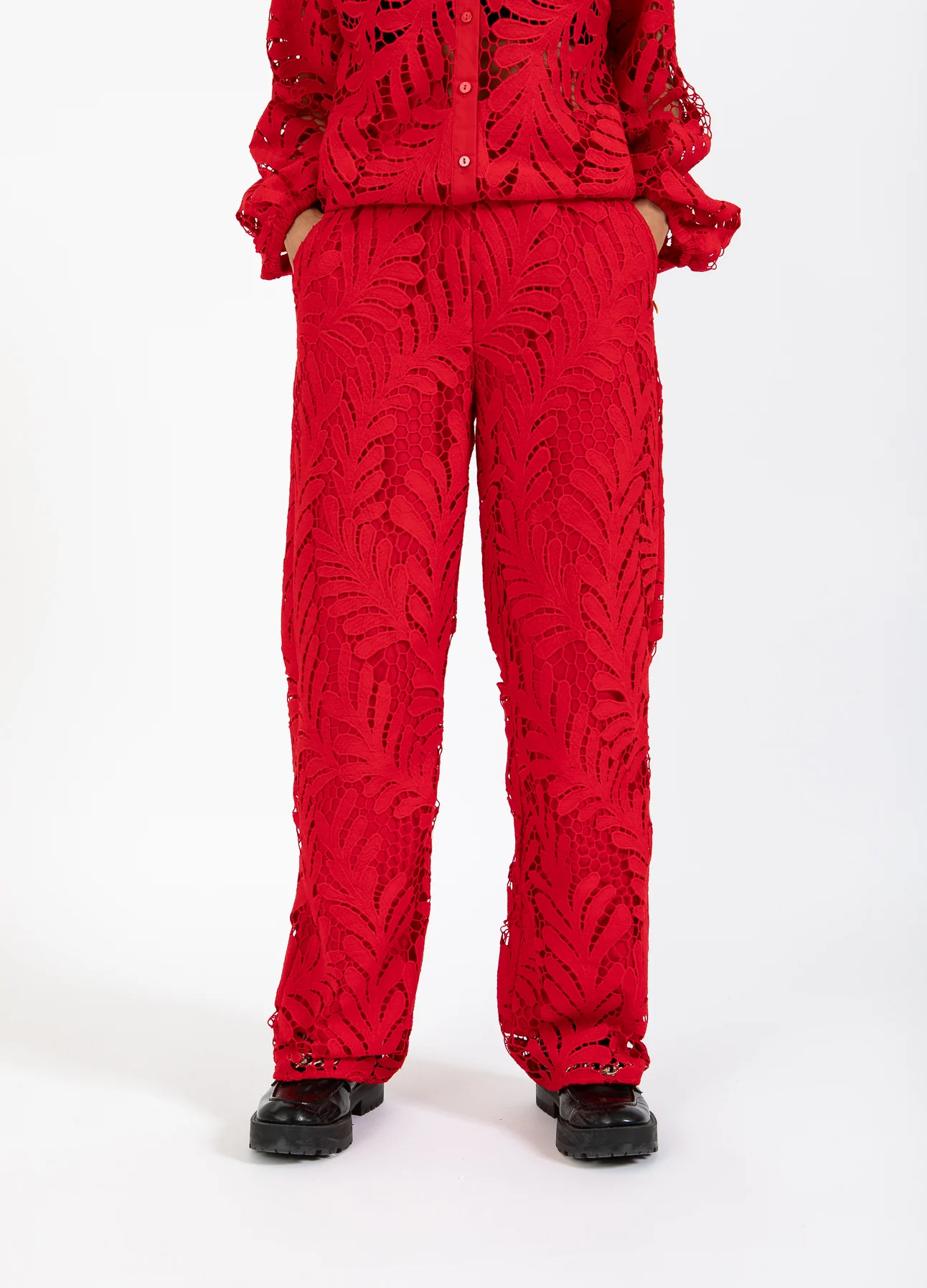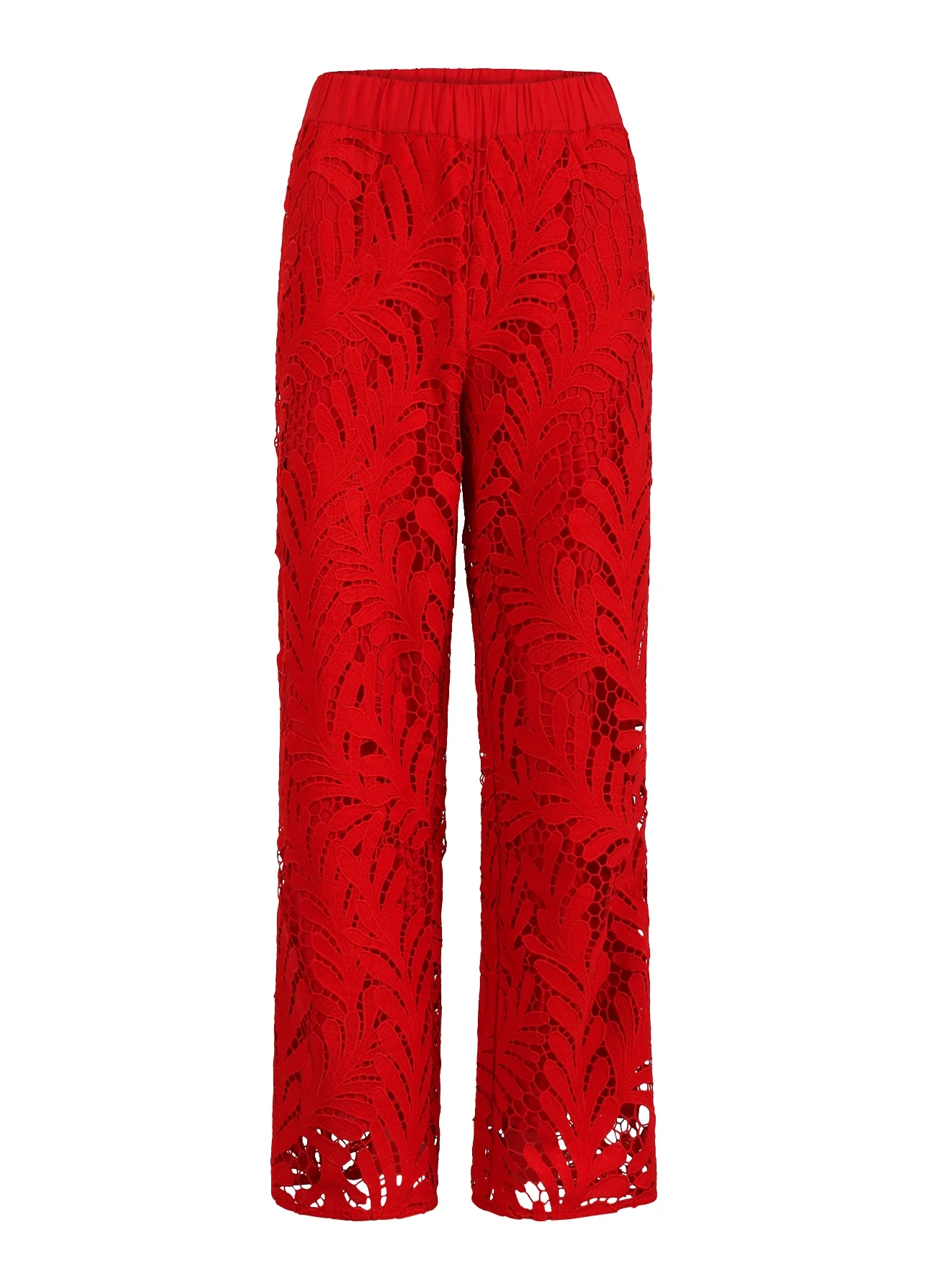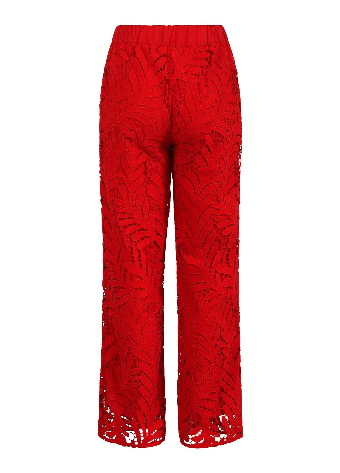 Deze opvallende kanten broek is ontworpen om een vleugje verfijning en elegantie toe te voegen aan elke garderobe. Perfect voor speciale gelegenheden of een avondje uit.