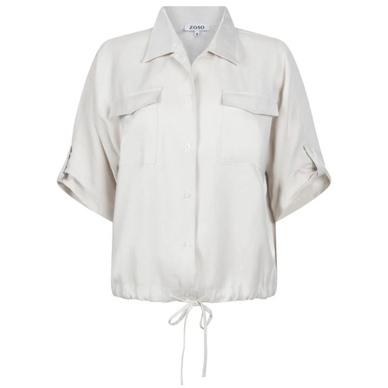 Kit woven viscose blouse Sonja van ZOSO voor dames. Deze elegante blouse in de zachte kleur Kit straalt rust en verfijning uit en is een perfecte toevoeging aan een moderne garderobe. De blouse heeft een vrouwelijke uitstraling met een klassieke kraag, knoopsluiting en twee borstzakken die zorgen voor een subtiele, stoere touch. De lichte tint maakt dit item tijdloos en makkelijk te combineren met verschillende kleuren en stijlen.