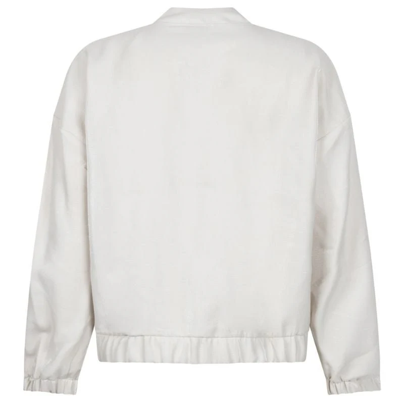 Het jasje is gemaakt van geweven viscose en voelt licht en soepel aan. De elastische boorden aan de onderzijde en bij de mouwen zorgen voor een comfortabele pasvorm en geven het ontwerp een moderne, casual touch. De subtiele naaddetails aan de voorzijde versterken de sportieve uitstraling zonder dat het geheel te druk wordt. Dankzij de luchtige kwaliteit draag je dit jasje moeiteloos over een top of blouse.