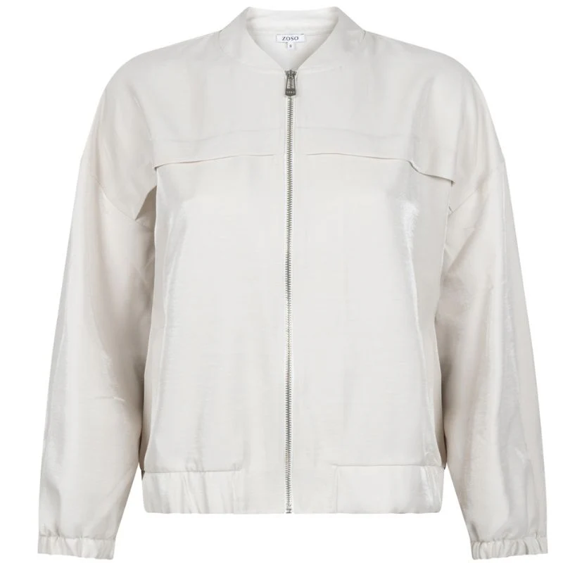 Kit woven viscose jacket Elise van ZOSO voor dames. Dit elegante jasje in de zachte kleur Kit is een stijlvolle aanvulling op je garderobe en perfect voor het tussenseizoen. Het model heeft een sportieve uitstraling met een ritssluiting aan de voorkant en een subtiele glans in de stof die zorgt voor een luxe effect. De neutrale tint maakt dit jasje veelzijdig en eenvoudig te combineren met verschillende outfits.