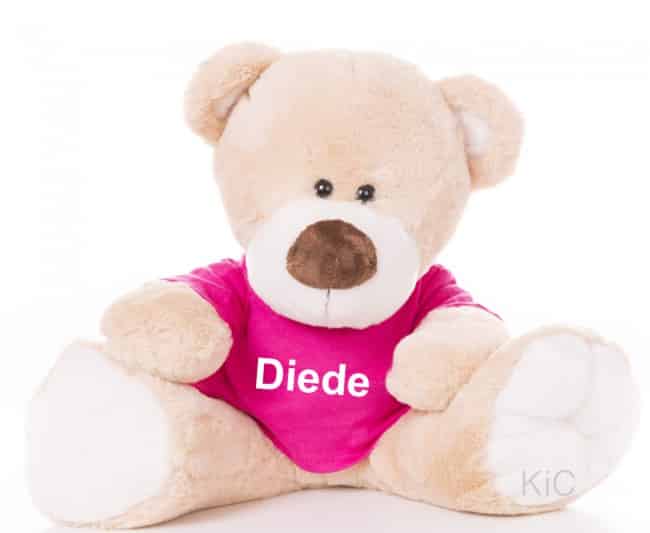 Knuffel met naam Beer. Shirtje wordt bedrukt met naam en of geboortedatum.