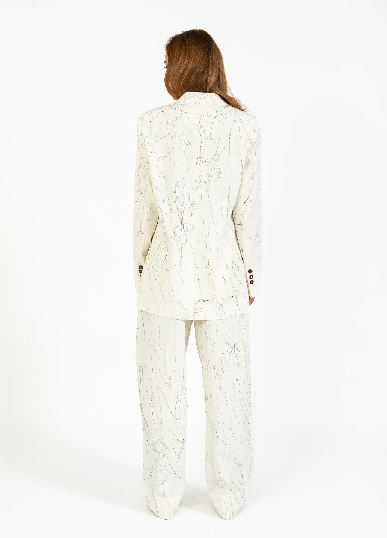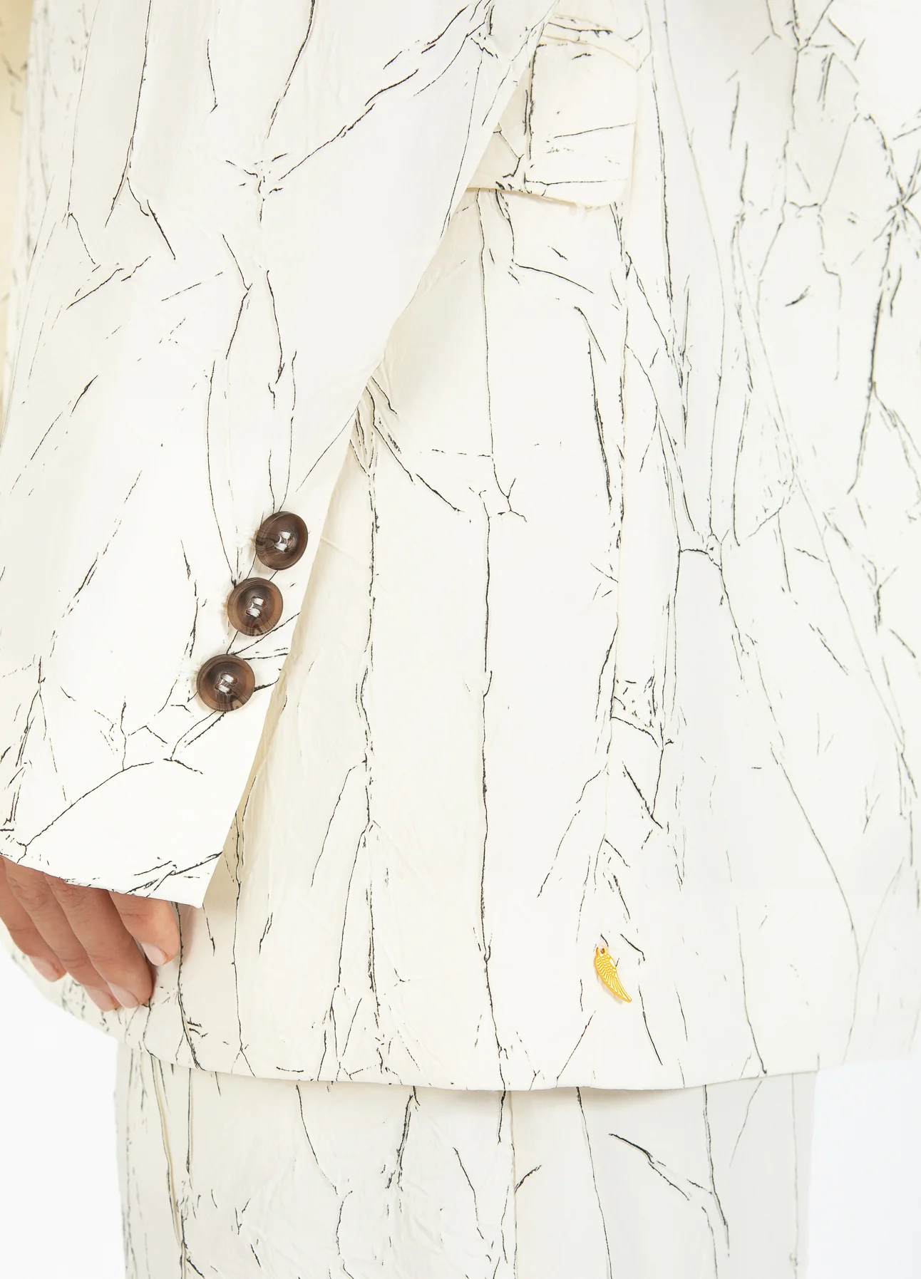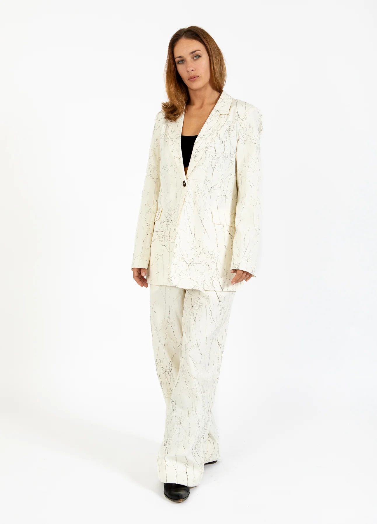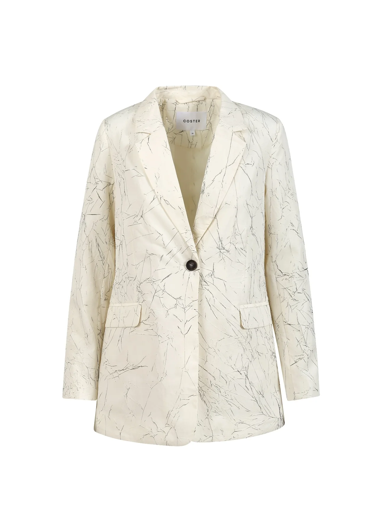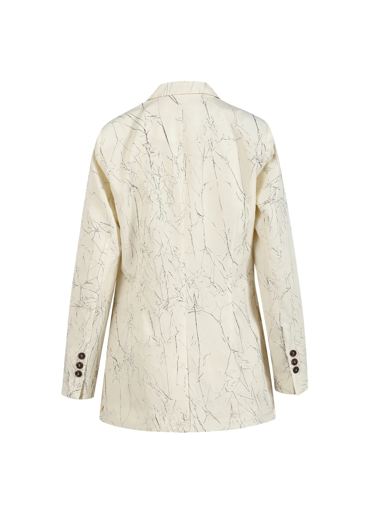 Een unieke blazer met een gerimpeld ontwerp dat een moderne twist geeft aan de klassieke blazer look. Ideaal voor het creëren van een verfijnde maar casual stijl.