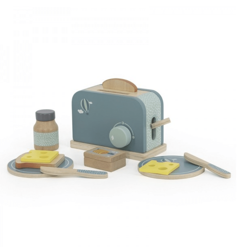 Deze fantastische ontbijtset van Label Label maakt de keukenuitzet van je kindje compleet. Ook de zondagse brunch neemt hij/zij voor zijn/haar rekening. Kom dus rustig wakker terwijl je kleine spruit uw broodje in de broodrooster stopt, de knop draait om de gewenste kleur te verkrijgen, de hendel naar beneden duwt en uw goudbruine, knapperige toast tevoorschijn tovert.