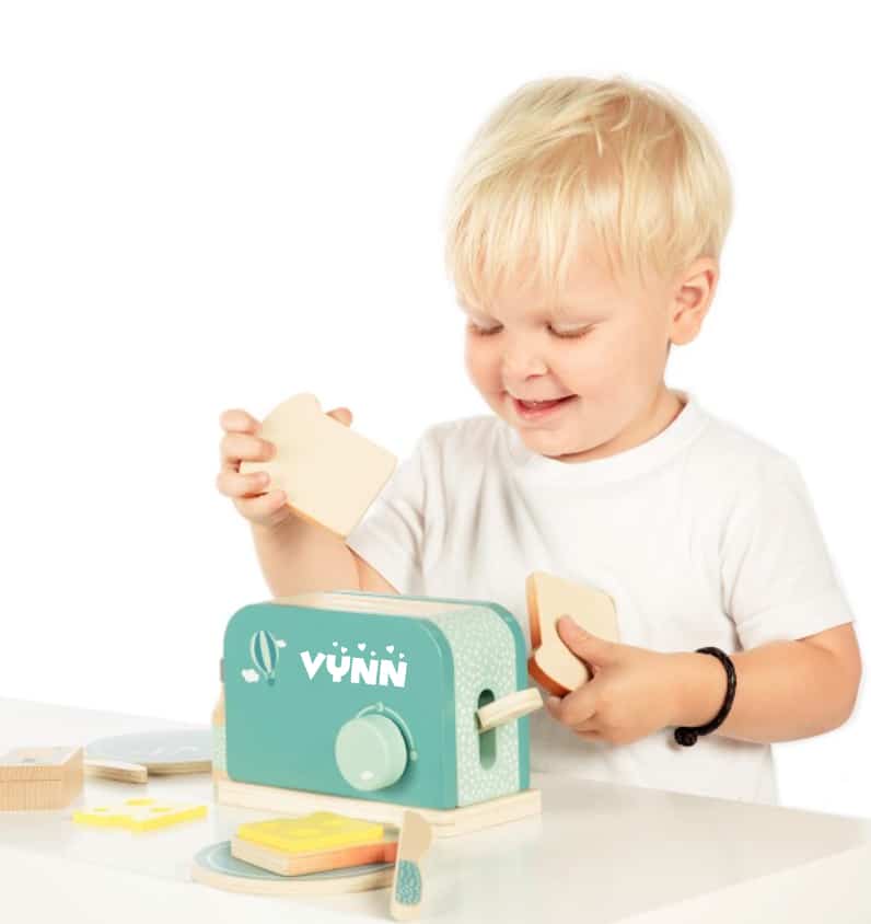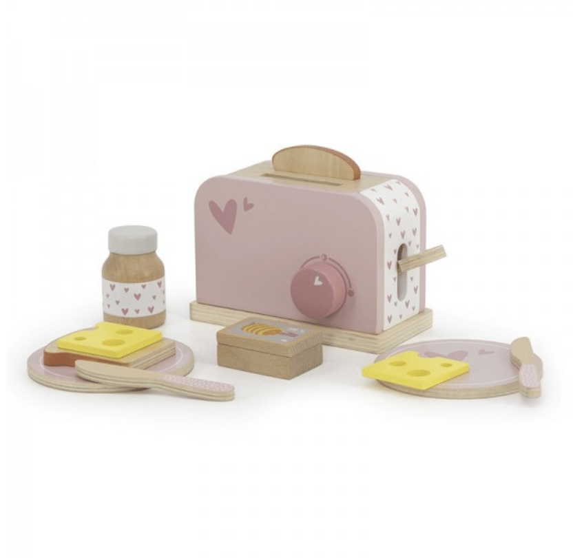 Deze fantastische ontbijtset van Label Label maakt de keukenuitzet van je kindje compleet. Ook de zondagse brunch neemt hij/zij voor zijn/haar rekening. Kom dus rustig wakker terwijl je kleine spruit uw broodje in de broodrooster stopt, de knop draait om de gewenste kleur te verkrijgen, de hendel naar beneden duwt en uw goudbruine, knapperige toast tevoorschijn tovert.