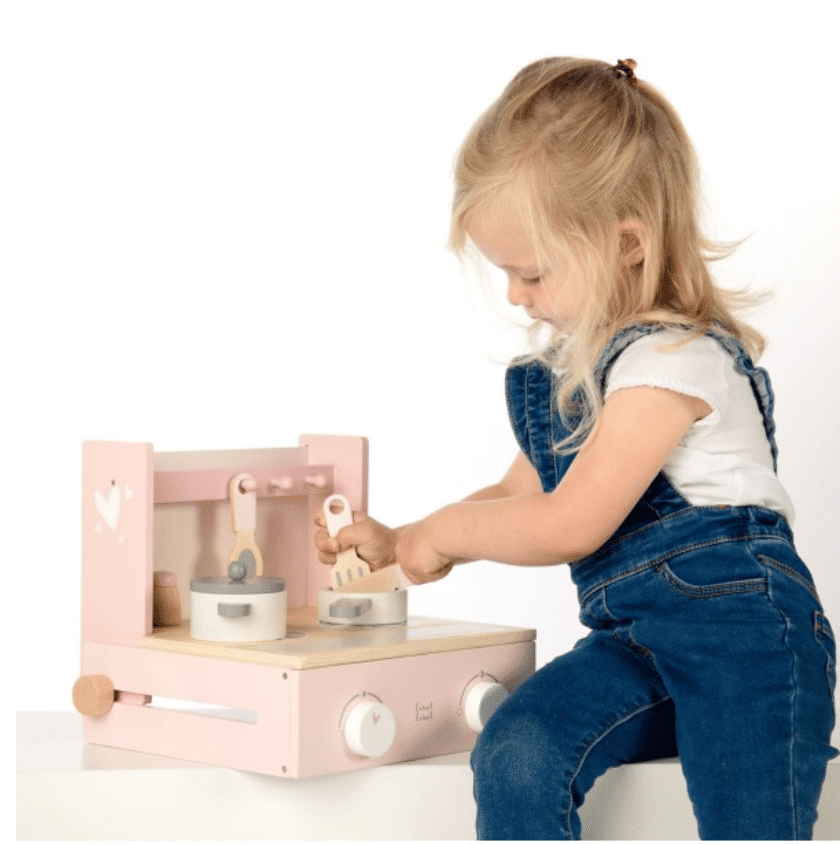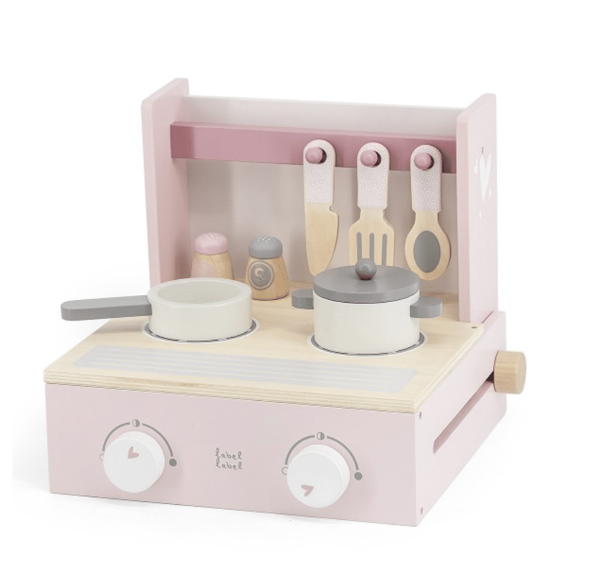 Je kleine zal zich een ware chef voelen als hij/zij aan het koken is op dit houten kookstel van Label Label! Deze compacte set heeft 2 kookpitten met draaiknoppen om ze in te stellen. Daarnaast is de set uitgerust met een steelpannetje, pannetje, peper- en zoutstel, een mes, spatel en een opscheplepel.
