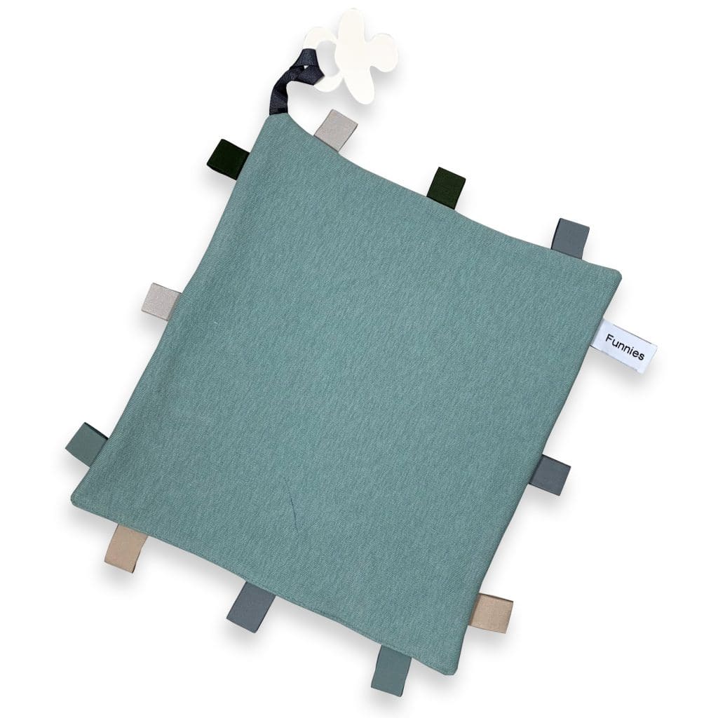 Het knuffeldoekje heeft ook nog allerlei vrolijke labeltjes waar baby’s dol op zijn.