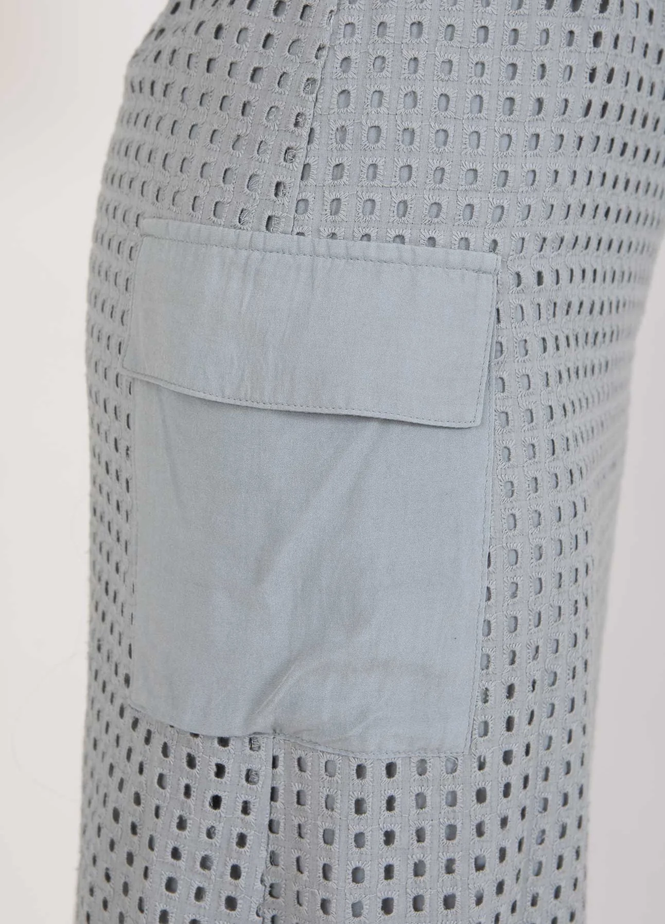 Het model is 180 cm lang en draagt maat 36. Ze heeft een borstomvang van 86 cm, een tailleomvang van 69 cm en een heupomvang van 94 cm.