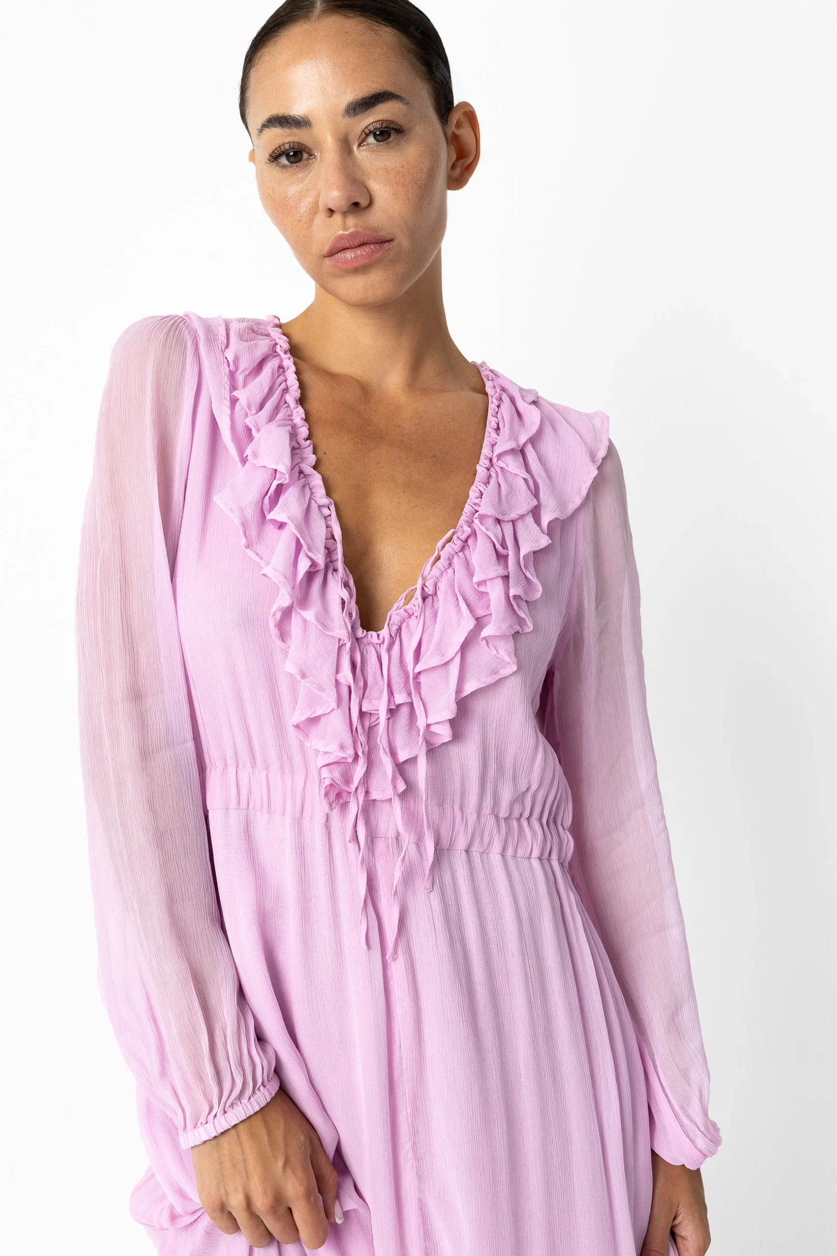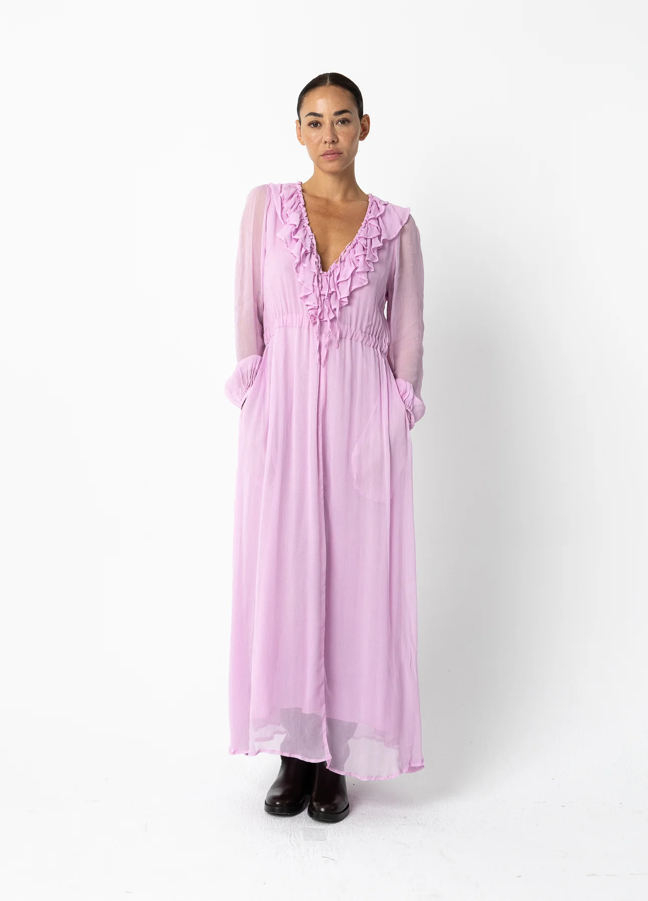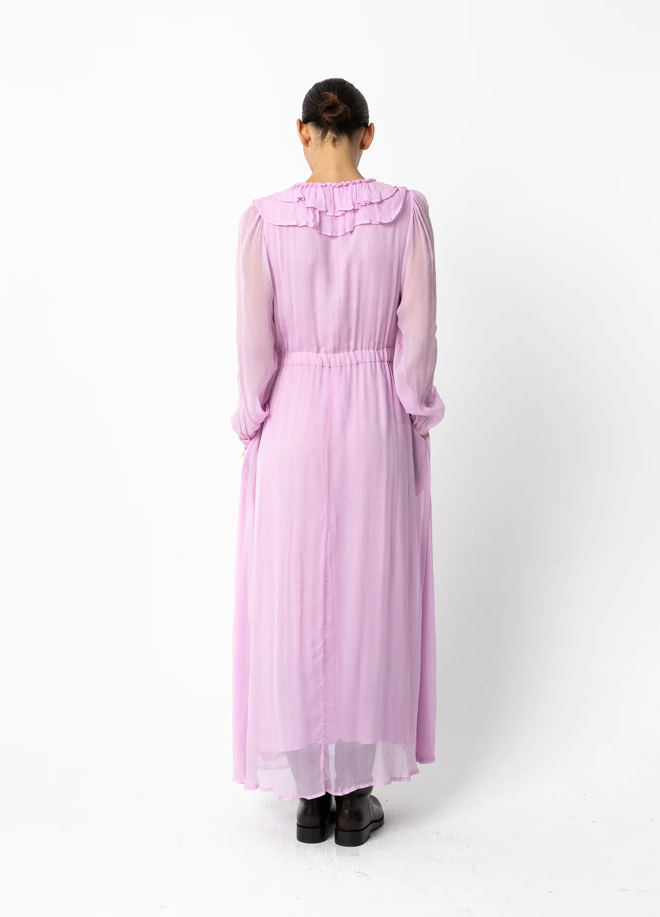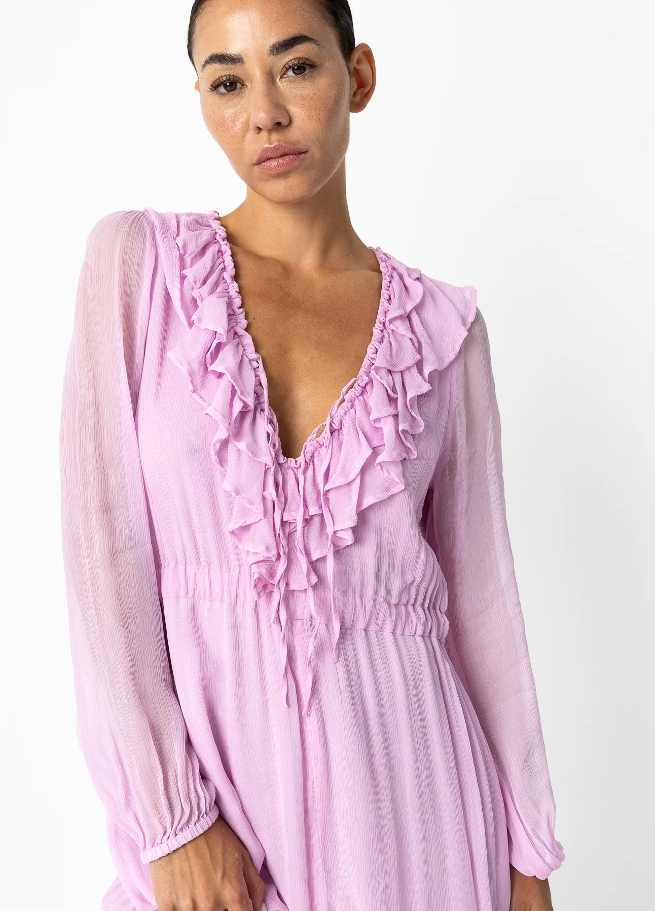 – Lange jurk in gekreukte chiffon