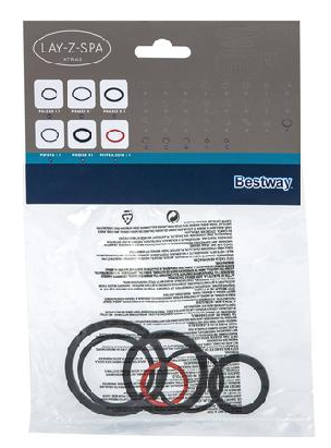 Onderdelenset voor Lay-Z-spa’s bestaande uit verschillende o-ringen voor de inlet/outlet van de pomp. Geschikt voor Lay-Z-Spa Hydrojets vanaf 2021. Spare-parts onderdeelnummers P06330, P06331, P06332, P07876, P06338 en P61953ASS18.