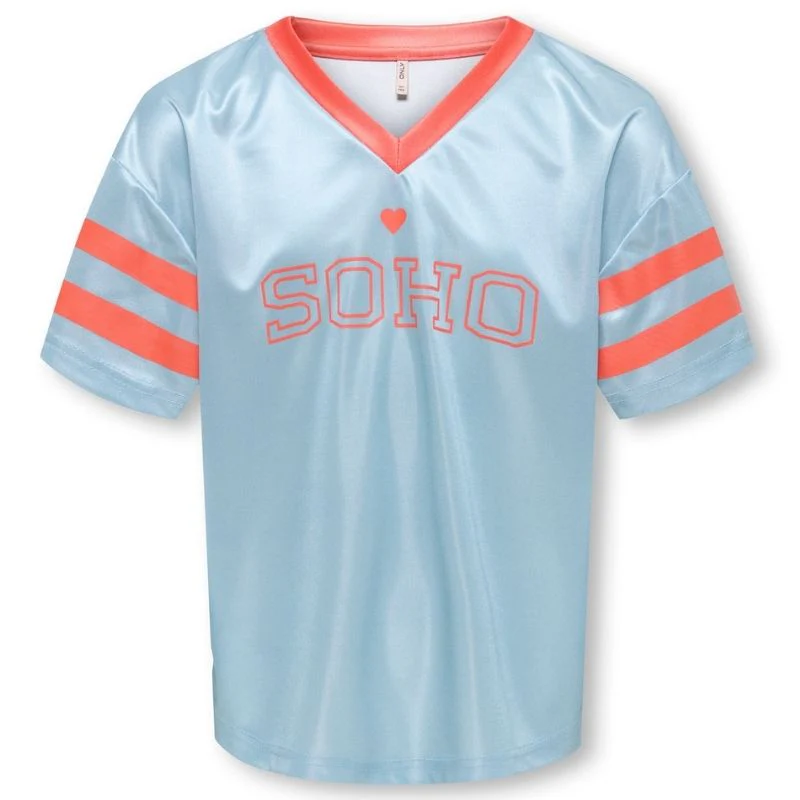 Lichtblauw met oranje sporty top Lulu van ONLY voor meiden. Deze top heeft een frisse en sportieve uitstraling dankzij de combinatie van lichtblauw met opvallende oranje accenten. De soepele en licht glanzende stof draagt comfortabel en voelt prettig aan op de huid, waardoor de top ideaal is voor dagelijks gebruik. De kleuren geven het shirt een speelse en energieke look die goed past bij een actieve stijl.