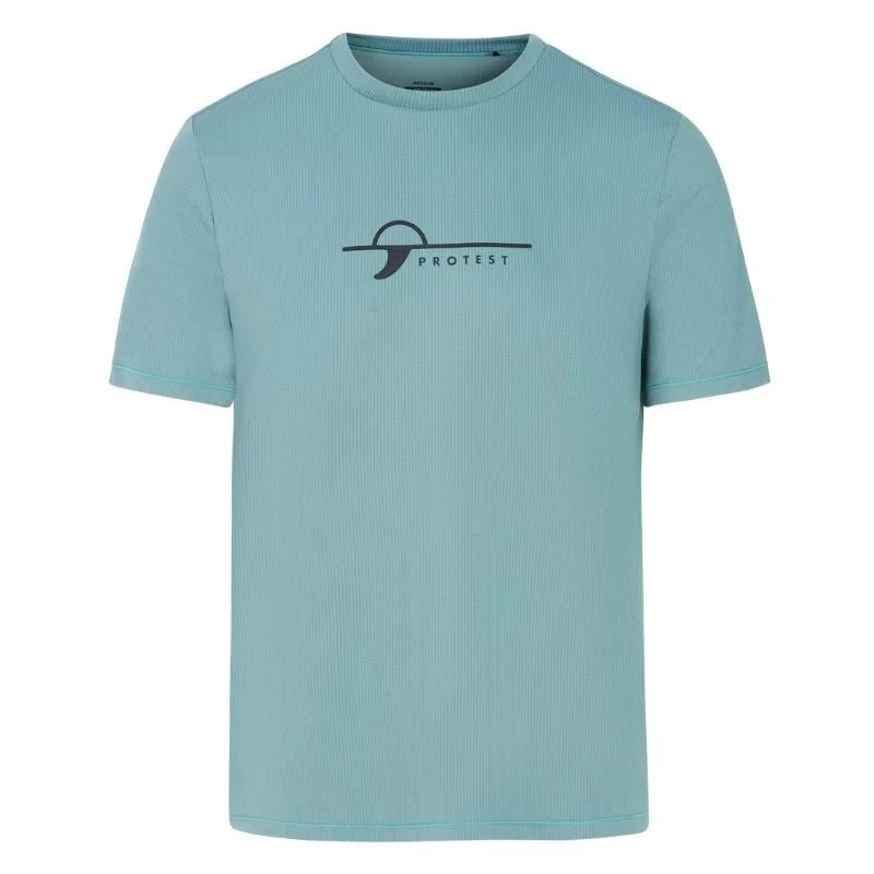 Lichtgroen surf t-shirt Core van Protest voor heren. Dit sportieve shirt met korte mouwen is ideaal voor actief gebruik op en rond het water. De stof beschermt tegen schadelijke zonnestralen, droogt snel en is geschikt om in te zwemmen. De stoere print op de borst maakt het een perfecte mix van praktisch en stijlvol.
