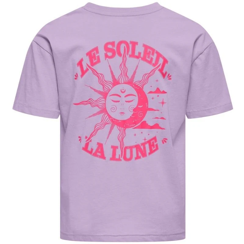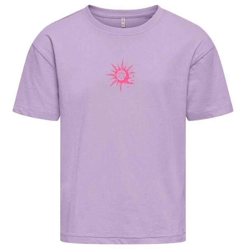 Lichtpaars t-shirt Ruth Solei Life van ONLY voor meiden. Dit t-shirt heeft een frisse en zomerse uitstraling en is ontworpen voor comfortabel dagelijks dragen. De lichtpaarse kleur geeft een zachte en trendy look die makkelijk te combineren is met andere items in de kast. De pasvorm valt relaxed en biedt voldoende bewegingsvrijheid tijdens school, vrije tijd en vakantie.