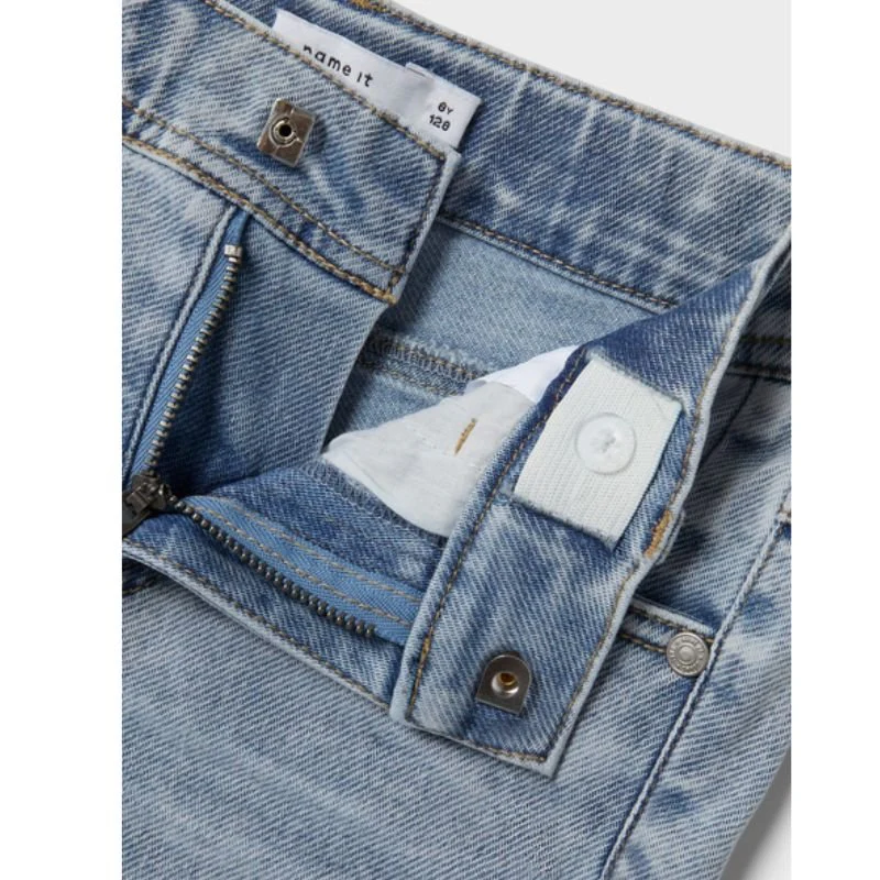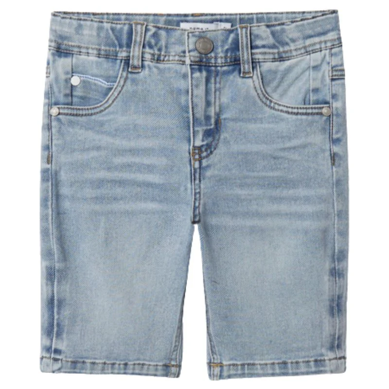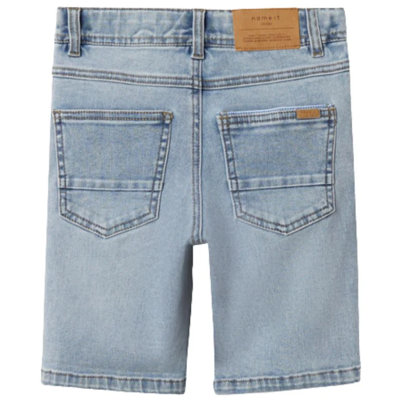 Light Blue Denim short Theo van Name It voor jongens. Deze short heeft een prachtige blauwe wassing die de stof een unieke uitstraling geeft. De fijne stretchstof zorgt voor optimaal comfort en bewegingsvrijheid. De riemlussen voegen een stijlvolle touch toe, terwijl de opvallende stiknaad en leuk speels detail geeft. Deze short is dus een echte zomer must-have!