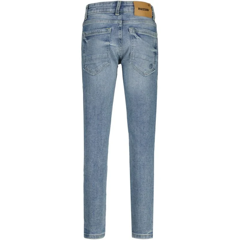 Light Blue Stone slim fit jeans Boston van Raizzed voor jongens. Deze slim fit jeans heeft een moderne en strakke pasvorm die perfect aansluit bij de eigentijdse stijl van jongens. De lichte stone wash kleur geeft de jeans een frisse uitstraling en maakt het makkelijk om te combineren met verschillende tops, hoodies of t-shirts. De stof is zacht en heeft net genoeg stretch, waardoor de jeans comfortabel zit, zowel op school als in de vrije tijd.