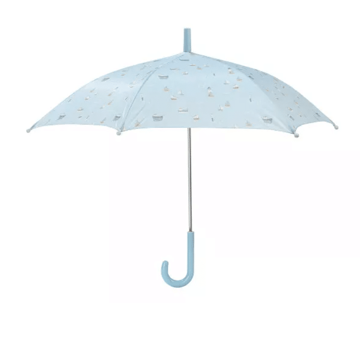Regent het buiten. Je blijft lekker droog onder deze fijne paraplu van Little Dutch. De paraplu is versierd met gezellige tekeningen van alles wat te zien is in de haven, passend bij het thema Sailors Bay. De paraplu is 57 cm hoog en heeft een doorsnede van 66 cm