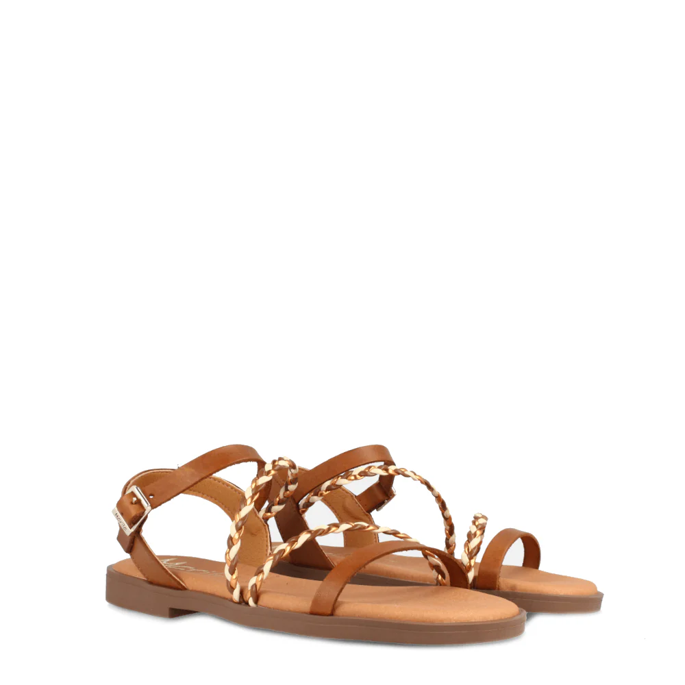 Zoek je de perfecte uitbreiding van je zomerse garderobe? De Marila Riga Cognac sandalen zijn precies wat je nodig hebt! Deze platte sandalen voor dames zijn vervaardigd uit hoogwaardig rundleer en bieden een ongeëvenaard comfort. Met hun unieke ontwerp van hazelnootleren linten, verbonden door een witte en hazelnootkleurige vlecht, vangen ze moeiteloos de essentie van het zomerseizoen. De verstelbare gespsluiting zorgt voor een perfecte pasvorm, terwijl de zichtbare hiel een vleugje elegantie toevoegt. Laat je voeten genieten van de luxe van een 5 mm dikke gevoerde binnenzool die elke stap dempt.