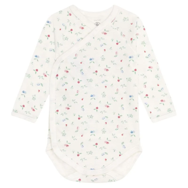 Marshmallow/Multi Color COMP BODY NAISS ML van Petit Bateau voor baby’s. Dit rompertje is voorzien van een overslag en lange mouwen. Dit rompertje heeft een witte kleur en een allover gekleurde print. Gemaakt van 100% katoen. Deze rompertjes zijn te dragen vanaf de geboorte tot 3 maanden. Handig dankzij het haltermodel en de drukknoopsluiting tussen de beentjes.