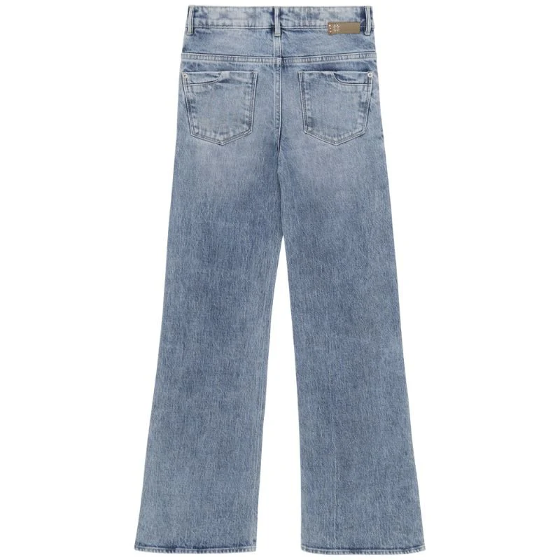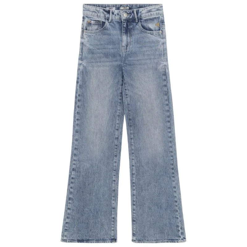 Medium denim jeans Wide Fit van Indian Blue Jeans voor meiden. Deze jeans is voorzien van een wide-leg design en een comfortabele, losse pasvorm die de hele dag prettig zit. Gemaakt van een zachte katoenmix met een beetje stretch voor extra bewegingsvrijheid. De medium denim wassing geeft de broek een stoere, moderne uitstraling.