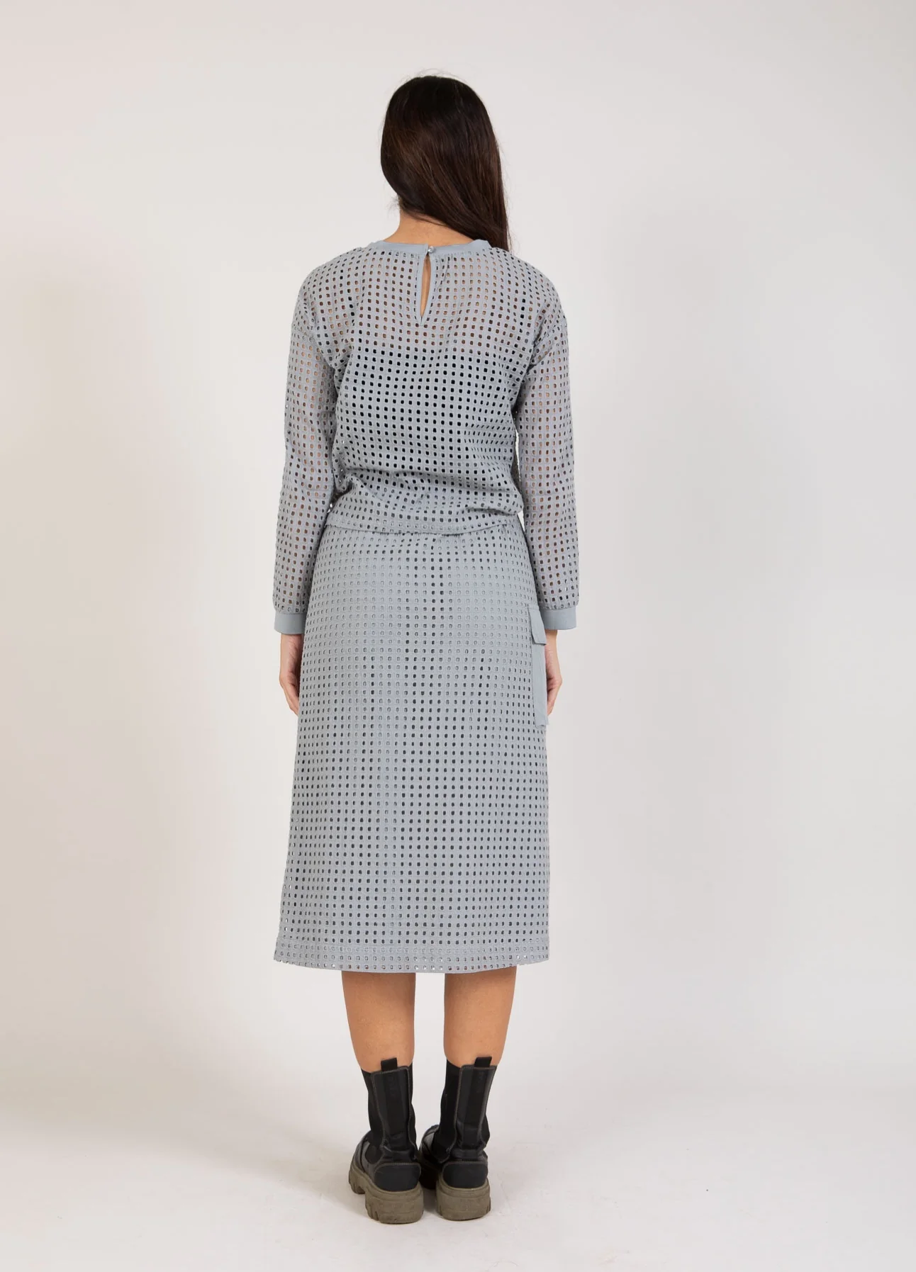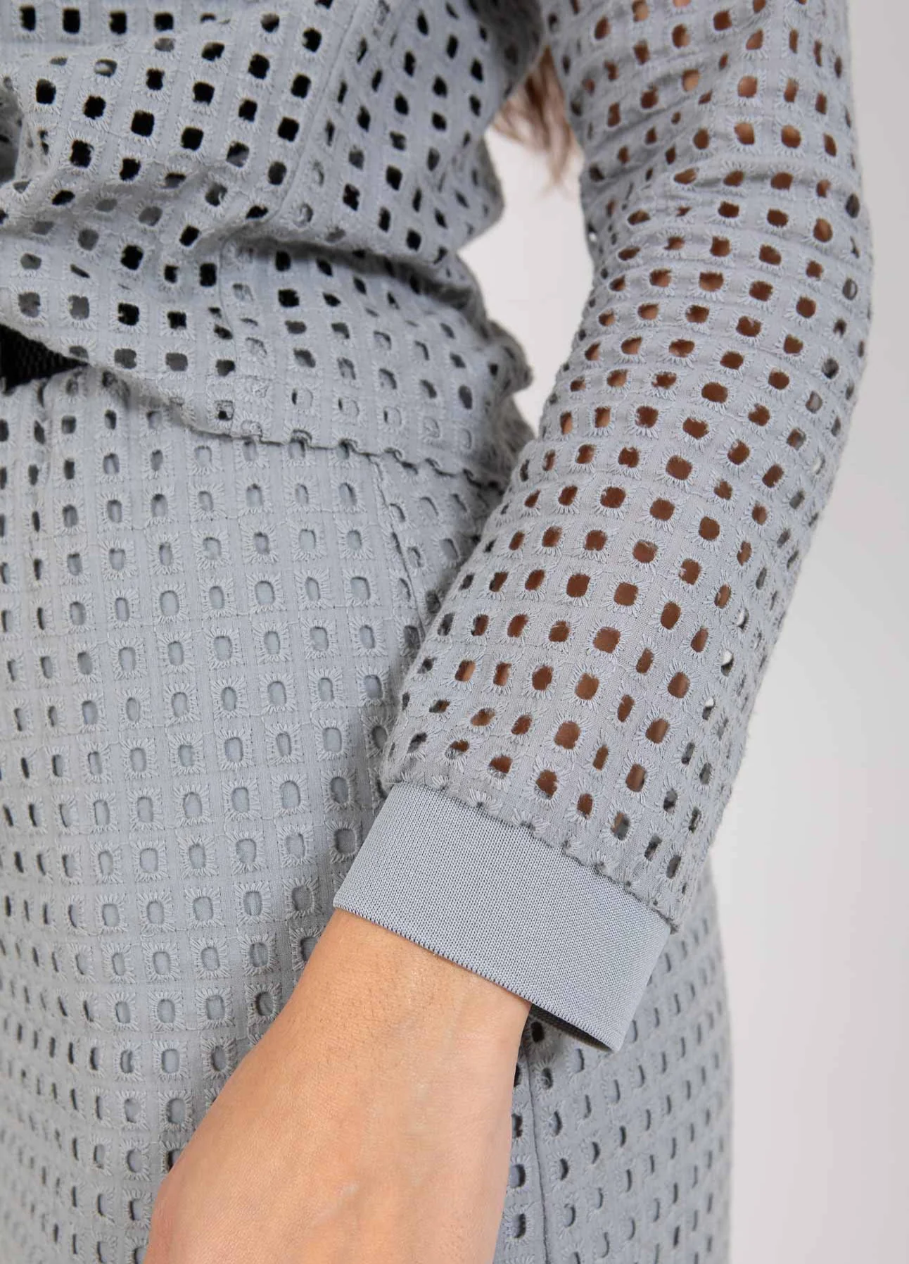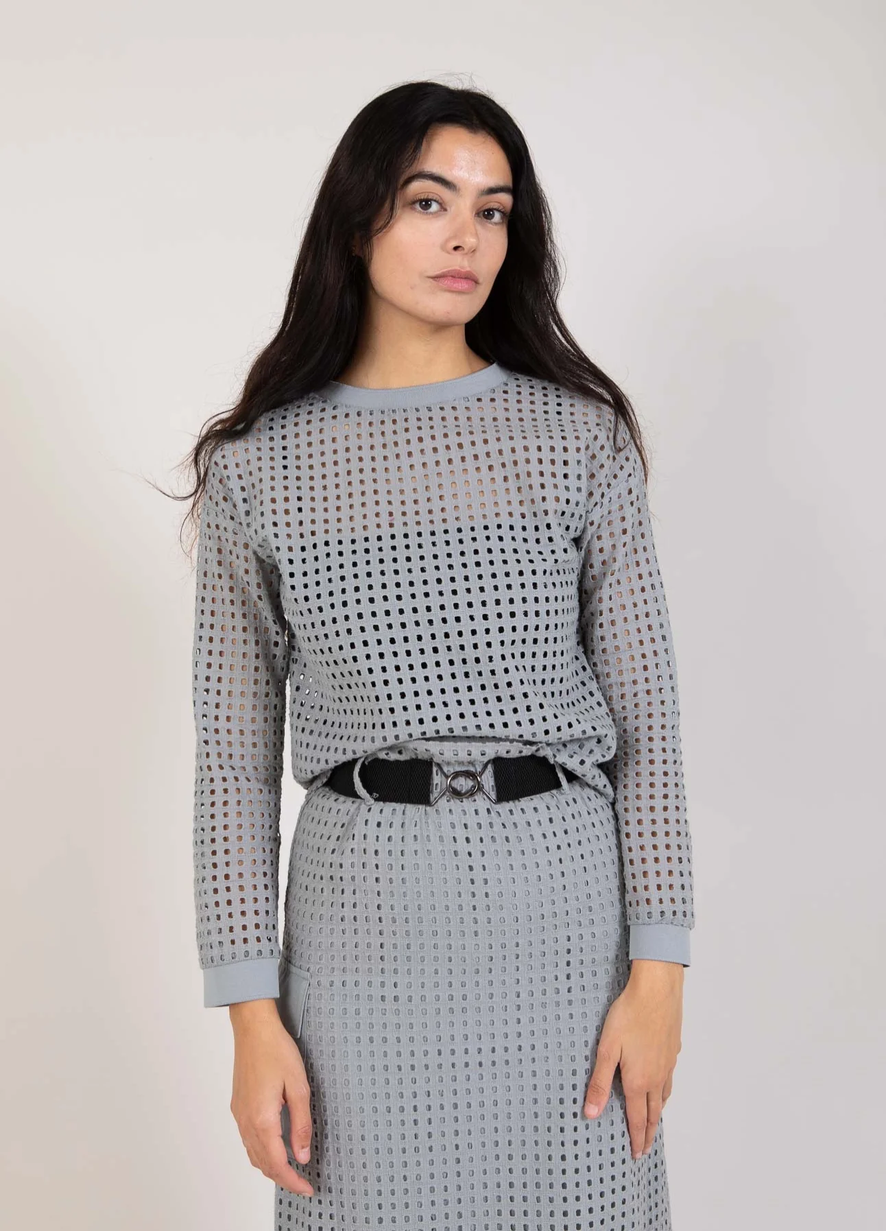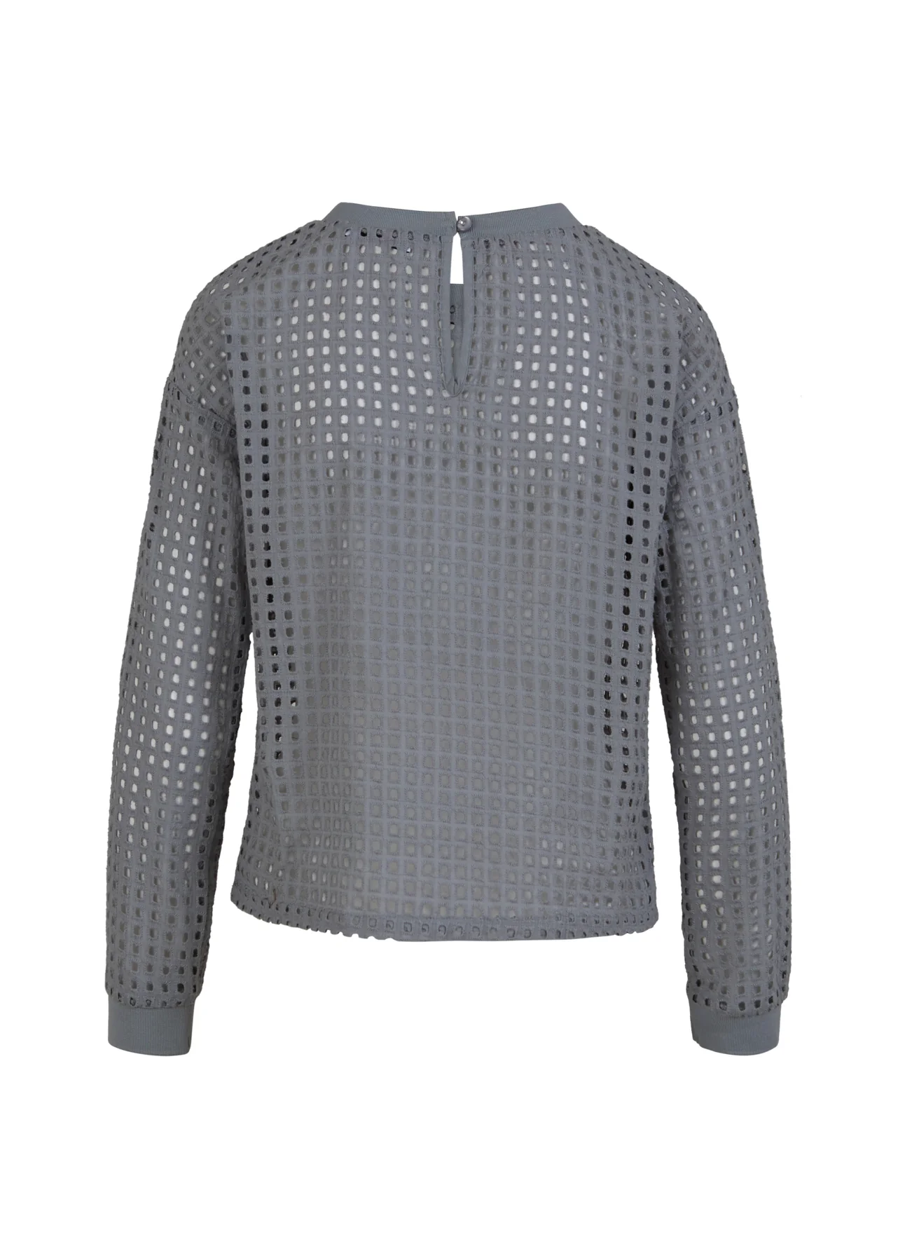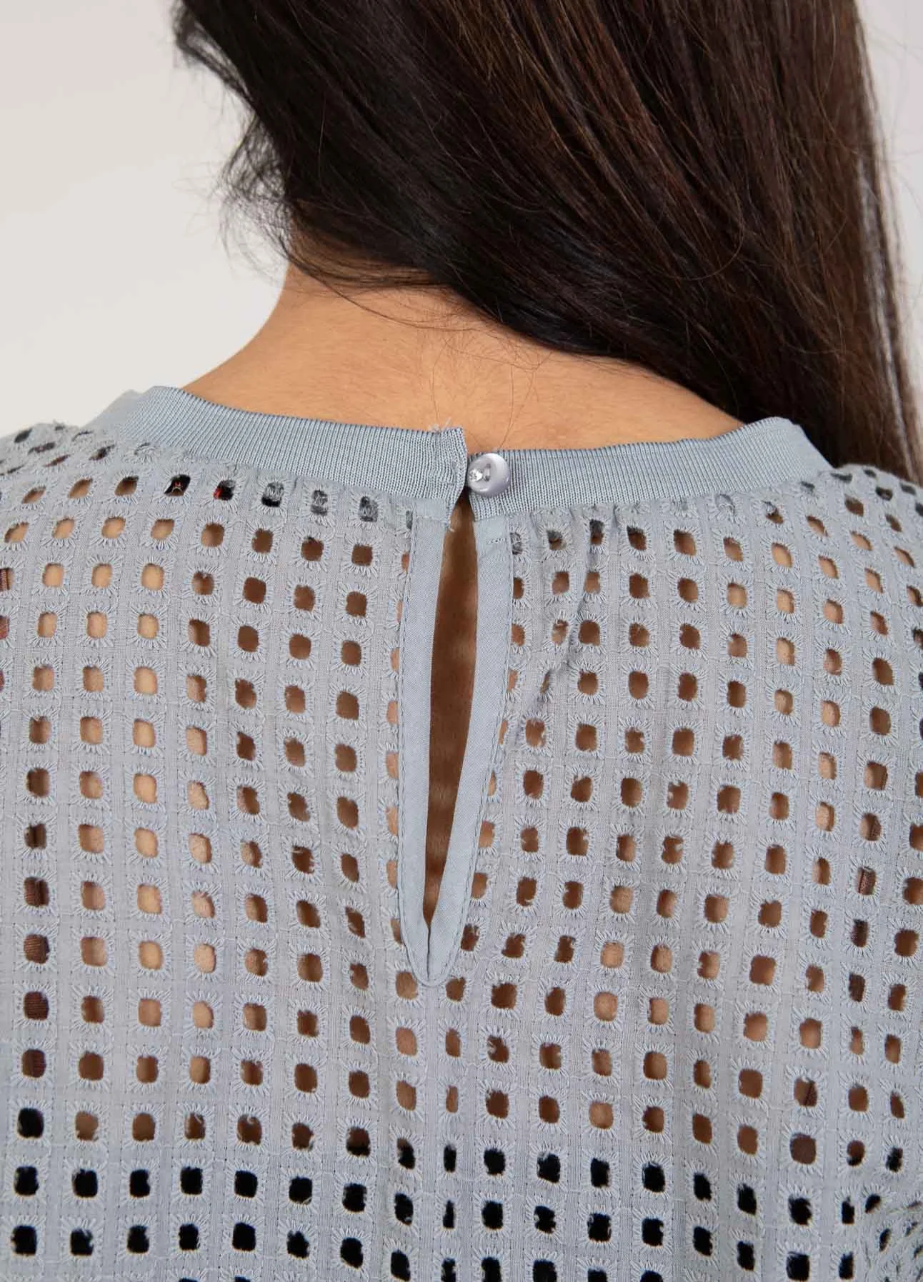 Het vierkante mesh-patroon voegt een moderne en trendy dimensie toe aan de top. Dit patroon is zowel opvallend als stijlvol, waardoor je opvalt in de menigte. Het is de perfecte combinatie van comfort en stijl, waardoor deze mesh top een must-have is in de garderobe van elke modebewuste vrouw.