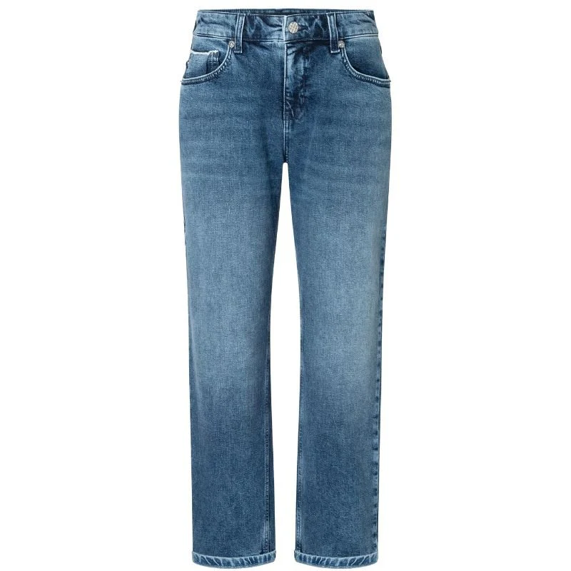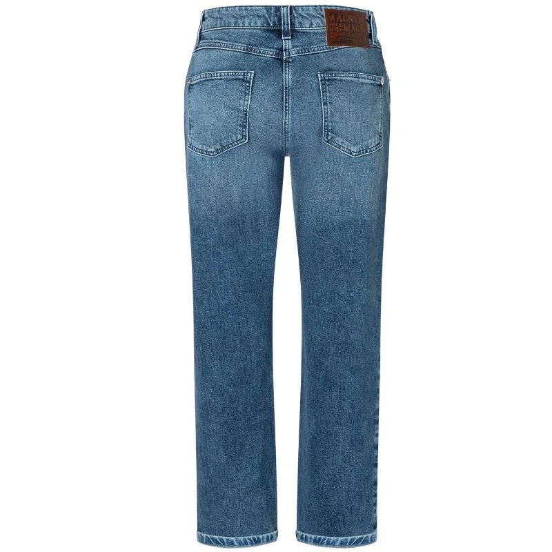 Mid Blue Random jeans Straight van MAC voor dames. Deze jeans is voorzien van een rechte pasvorm en een mooie middenblauwe wassing die een frisse, tijdloze uitstraling geeft. De zilveren knoop maakt het design extra stijlvol. Gemaakt van hoogwaardig denim met een lichte stretch voor optimaal comfort en bewegingsvrijheid. Perfect voor zowel casual als nette looks.
