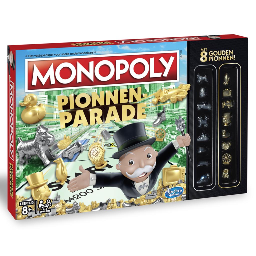 Deze Monopoly Pionnenparade bevat naast de 8 klassieke pionnen nog 8 extra gouden pionnen die zijn geselecteerd om de 8 categorieën te vertegenwoordigen in de pionverkiezingen in januari 2017.