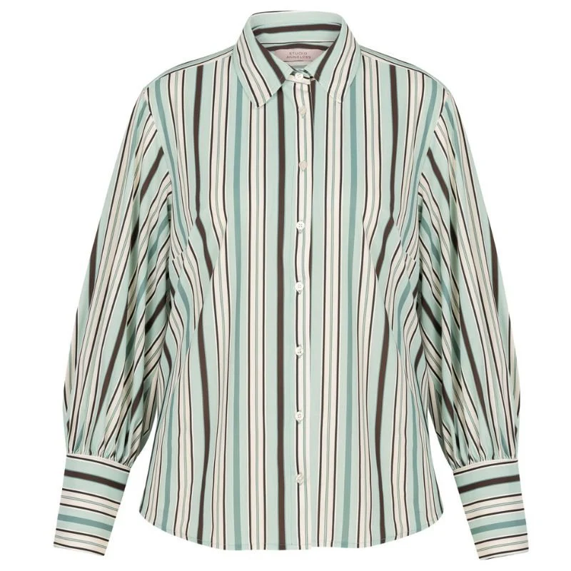 Multicolor gestreepte blouse Rensje van Studio Anneloes voor dames. De Rensje stripe blouse van Studio Anneloes is een moderne klassieker met een frisse uitstraling. De verticale strepen in Kit, Espresso, Light Sage Green en Dark Sage Green zorgen voor een slank silhouet en geven de blouse een speels maar stijlvol karakter. Elegante details zoals de klassieke kraag en de opvallende manchetten maken dit item compleet en geven het net dat beetje extra.