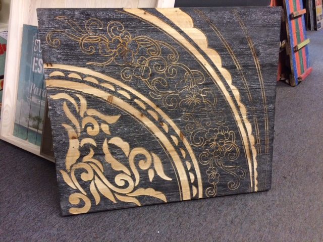 Muurdecoratie Circle hout antique zwart relief olie