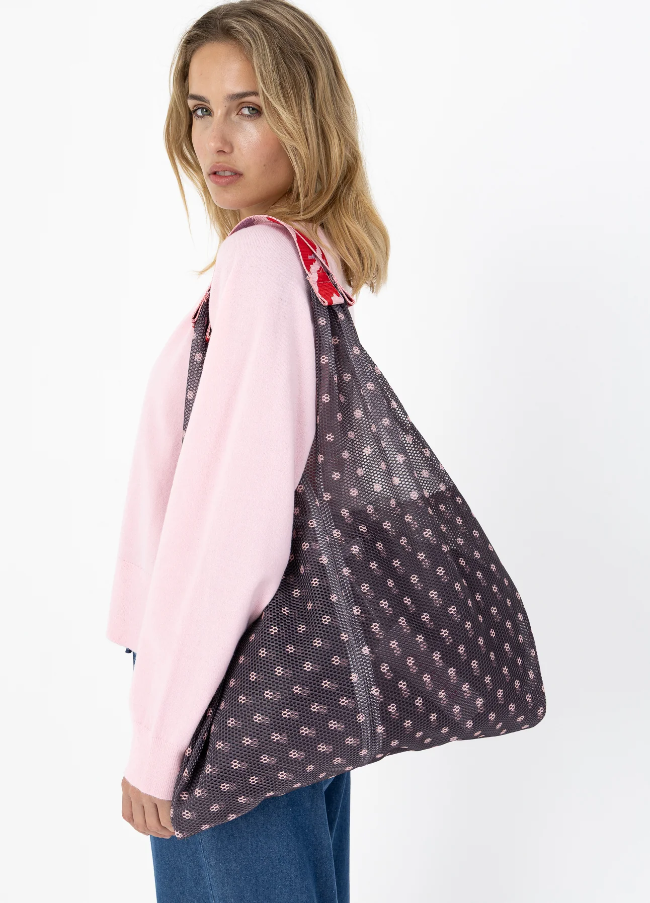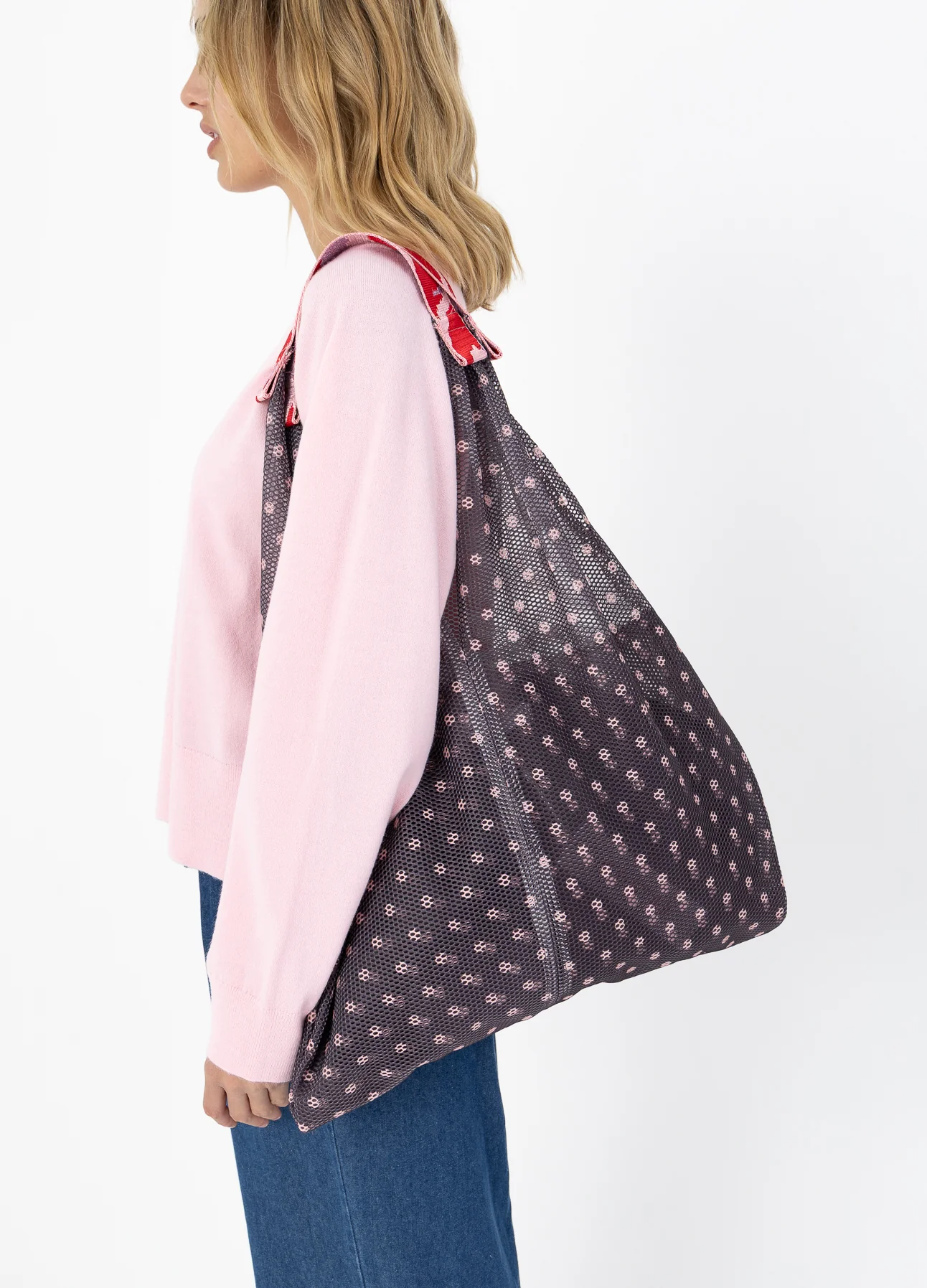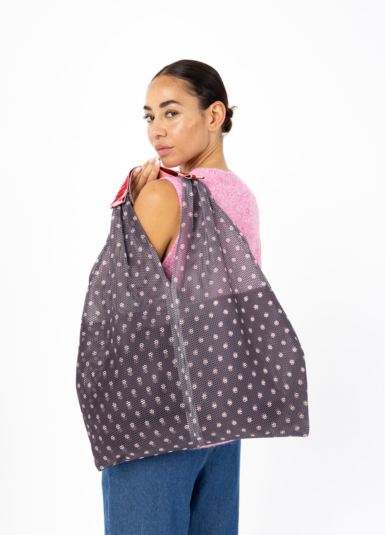 Deze mesh tas is perfect als zowel een boodschappentas of werktas. Je kunt hem over de schouder dragen of in de hand.