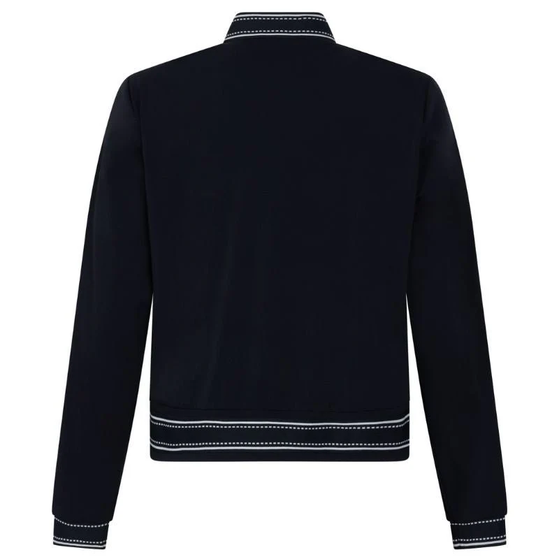 Night Blue sporty travel jacket Tyler van ZOSO voor dames. Dit sportieve jasje heeft een krachtige en tijdloze uitstraling dankzij de diepe donkerblauwe kleur en de subtiele contrastdetails bij de boorden en kraag. De ritssluiting aan de voorzijde zorgt voor een strakke en moderne afwerking. De lichte strepen langs de mouwen geven het ontwerp een dynamische en eigentijdse twist die perfect aansluit bij de herkenbare sportieve stijl van ZOSO.