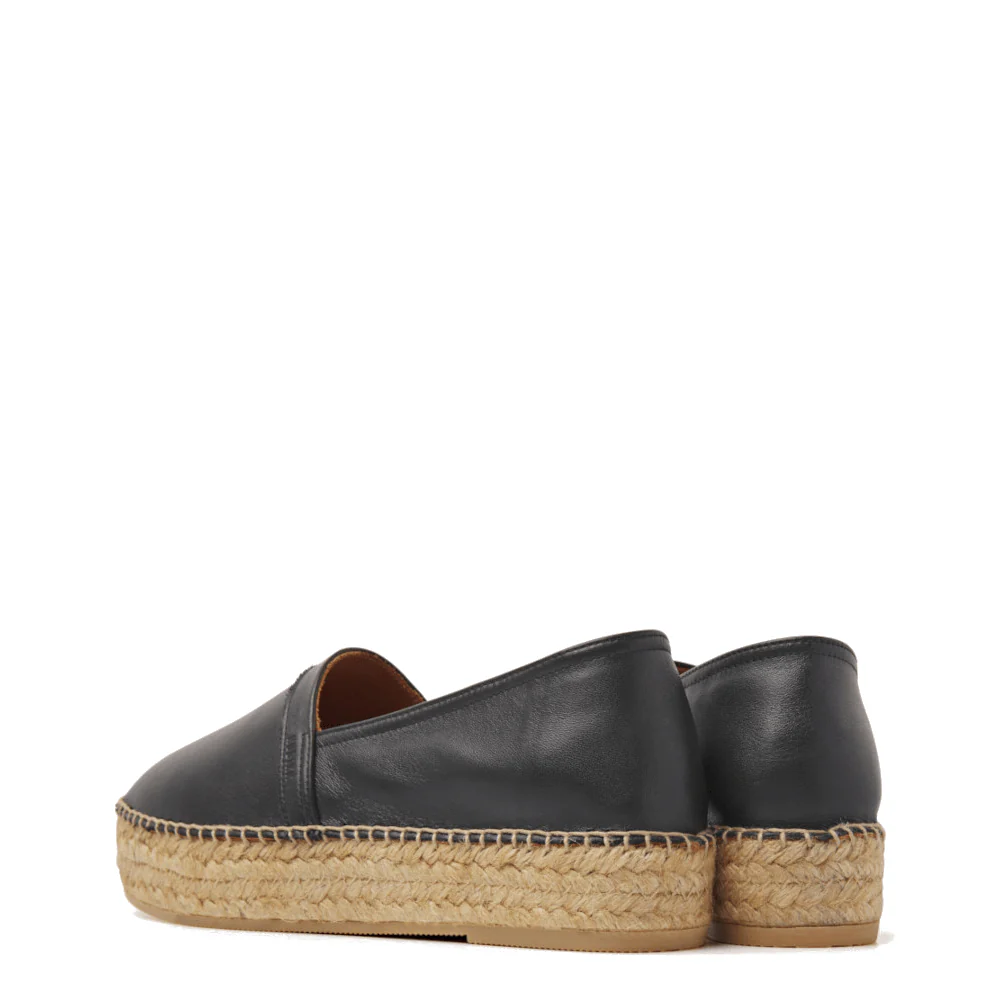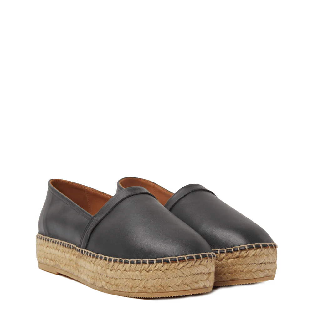 De Nubikk Miss Rosita zwarte espadrilles zijn een toonbeeld van elegantie en comfort. Deze instappers, zonder veters, zijn vervaardigd uit hoogwaardig leer en zijn voorzien van een lichtgewicht zool van touw. De unieke combinatie van espadrille jute touw en een rubberen profiel aan de onderzijde zorgt niet alleen voor een stijlvolle uitstraling maar biedt ook een uitstekende grip. Deze espadrilles zijn het perfecte accessoire voor elke outfit, of je nu gaat voor een casual look of een meer geklede gelegenheid.