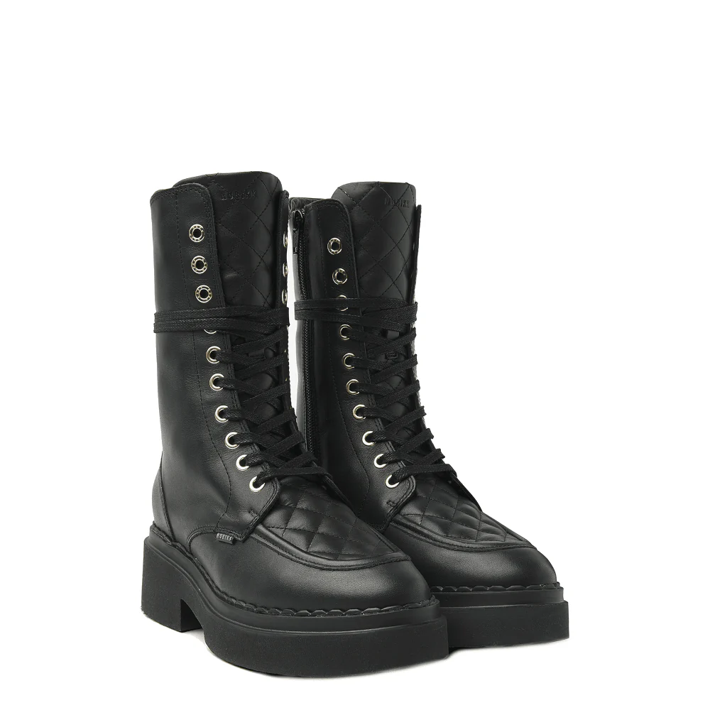 Ontdek de perfecte mix van stoer en elegant met de Nubikk Finn Aubine 21076200 Zwart. Deze laarzen maken een onvergetelijke indruk met hun unieke gewatteerde gestikte voorkant en opvallende gouden oogjes. Het design ademt een gedurfde, maar verfijnde vrouwelijkheid uit, versterkt door de sierlijke geruite stiksels. Vervaardigd uit hoogwaardig glad zwart leer, bieden deze laarzen naast een opvallende stijl ook een belofte van duurzaamheid en kwaliteit. Ze zijn het toonbeeld van hoe comfort en stijl hand in hand kunnen gaan, geschikt voor zowel een actieve dag als een stijlvolle avond uit.