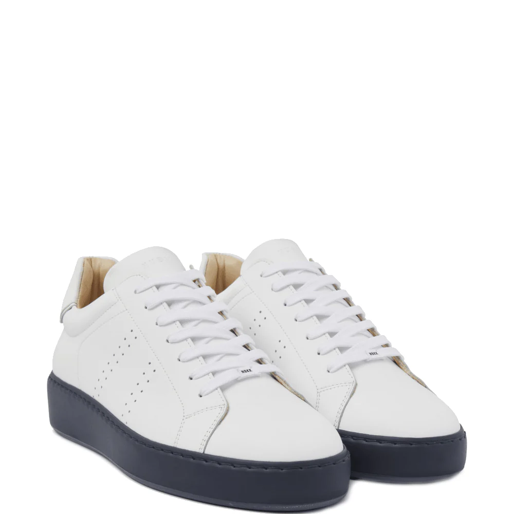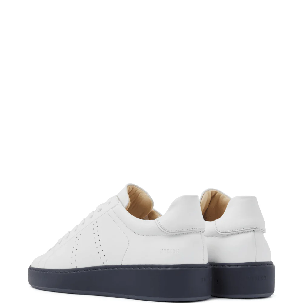 De Nubikk Jiro Banks veterschoenen zijn de perfecte mix van stijl en comfort. Deze witte sneakers voor heren zijn zorgvuldig ontworpen met een lichtgewicht ‘in-house designed’ cupsole en een dempende binnenzool die samen zorgen voor ultiem loopcomfort. Gemaakt van premium leer, beloven deze schoenen een duurzame kwaliteit en een strak, modern design. Het opvallende contrast van de donkerblauwe lichtgewicht zool en de geperforeerde zijkanten geeft deze sneakers een unieke touch.