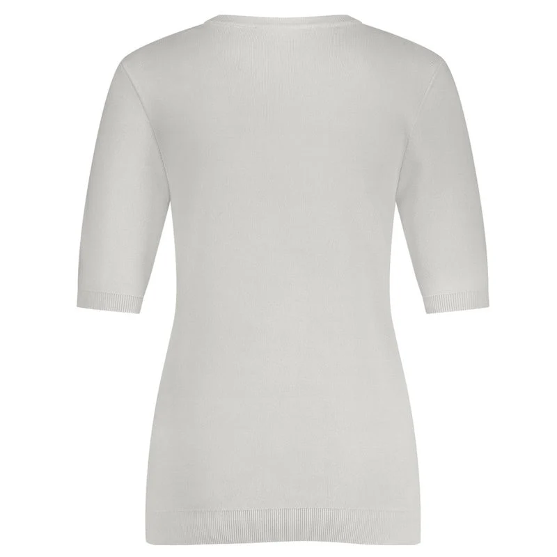 De offwhite kleur geeft de pullover een frisse en lichte uitstraling en vormt een perfecte basis binnen elke garderobe. Deze tint laat zich moeiteloos combineren met zowel neutrale als meer uitgesproken kleuren. De Travel Knit kwaliteit staat bekend om haar vormvastheid en comfort waardoor de pullover mooi in model blijft en prettig draagt gedurende de hele dag. De korte mouwen maken dit item ideaal voor verschillende seizoenen en zorgen voor een moderne look.