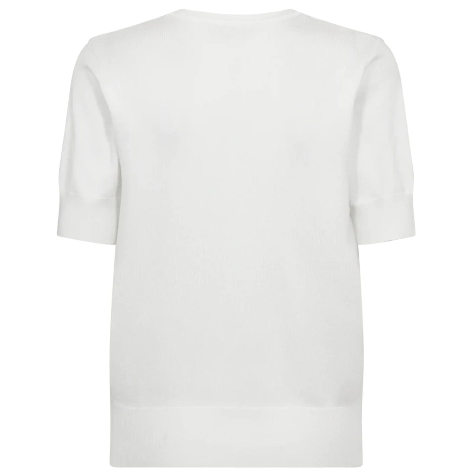 De pullover heeft een comfortabele pasvorm met korte mouwen die net iets langer vallen voor een flatterend effect. De brede boord aan de onderzijde zorgt ervoor dat de top mooi in model blijft en licht aansluit op de heup. De zachte knit voelt soepel aan en biedt prettig draagcomfort, waardoor je deze pullover zowel casual als gekleed kunt stylen.