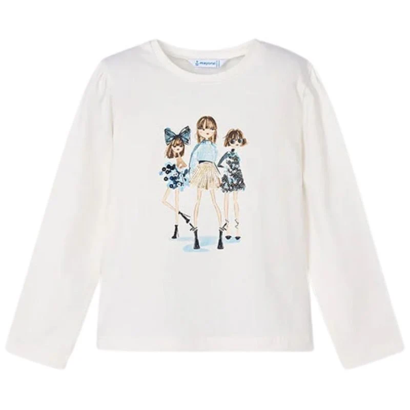 Offwhite longsleeve jurk van Mayoral voor meisjes. Deze top is voorzien van een ronde hals en lange mouwen, wat zorgt voor een comfortabele pasvorm. Gemaakt van zachte en ademende stof, ideaal voor het hele seizoen. De effen offwhite kleur en jurken print maakt het een tijdloos item en makkelijk te combineren.